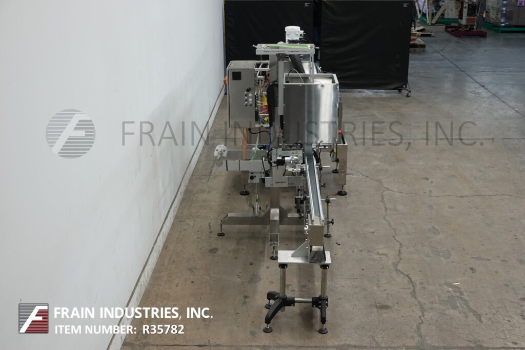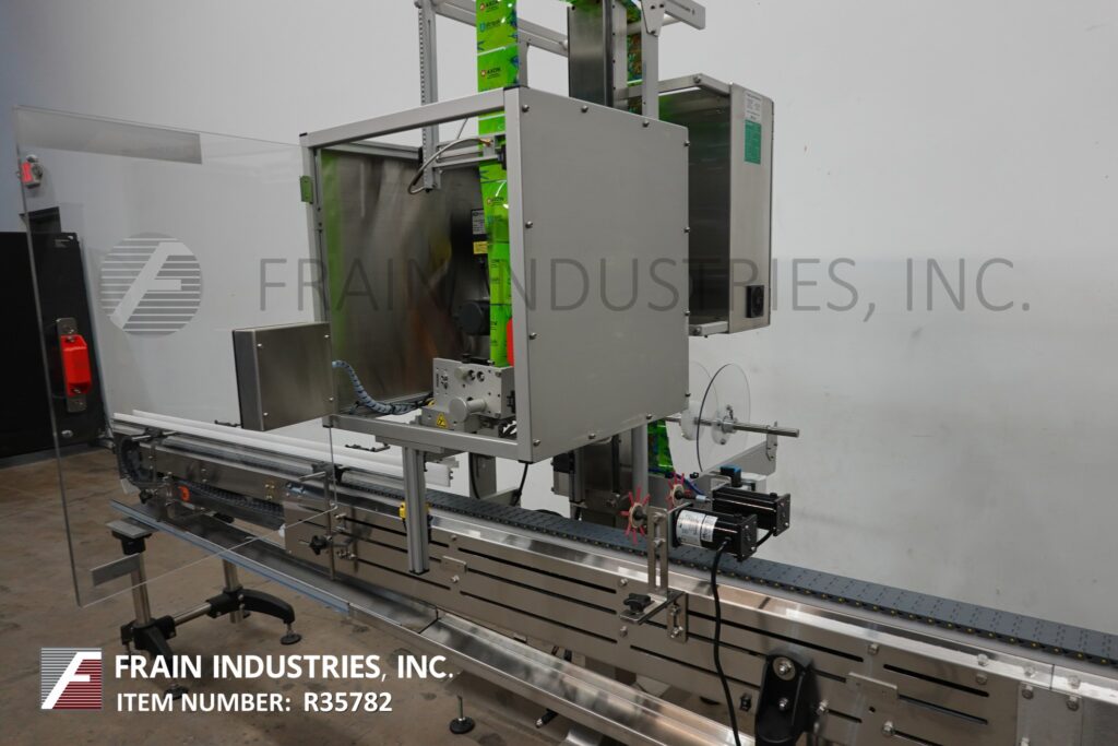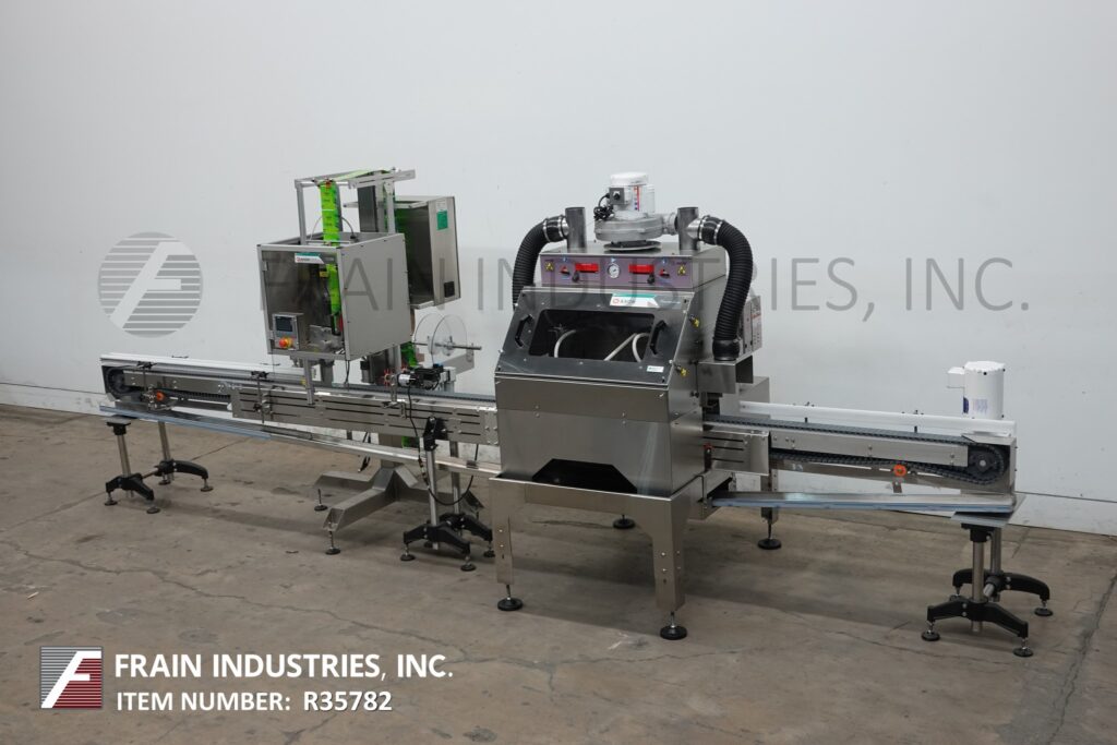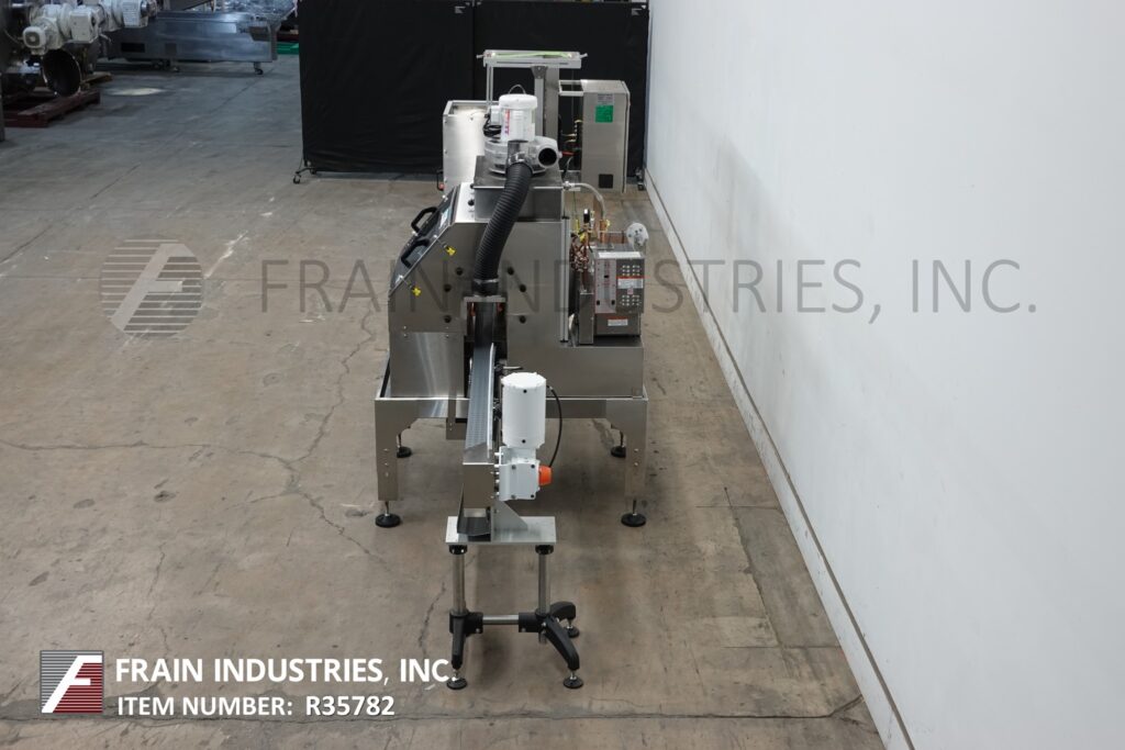 返回所有设备Axon,EZ-130型,自动,自动包含的Thermoflow Tamper明显的收缩颈带或套筒标签涂抹器,收缩隧道的额定值为每分钟30至150个容器,具体取决于材料,应用和机器配置。Layflat:15mm至130mm。薄膜厚度:40至70微米(1.5至3 mil)。最大容器尺寸6“ OD X 12”高。配备了12'长容器传送带,带有照片眼睛,用于机器激活,低滚动传感器,切割刀片,步进驱动膜进纸系统,垂直perf和TAMP,自我含有UL认证的30kW 10psi锅炉,收集冷凝物和水施仪和11gallon小时。胶片规格:最多16英寸OD卷。带LED显示屏的触摸板控制器。安装在高度可调节的不锈钢框架上。