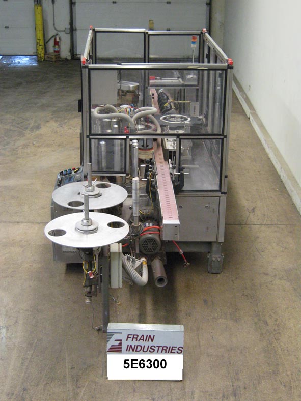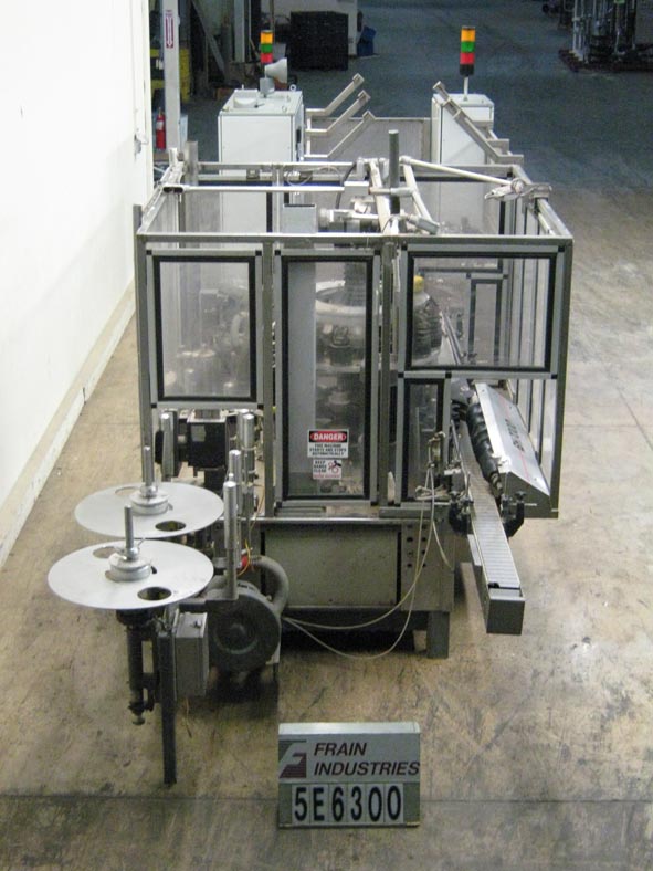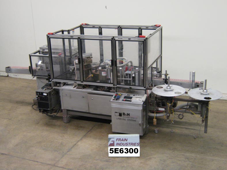 返回所有设备B&H 8000S自动,内联,卷料,胶水标签,额定速度100至750 cpm取决于应用。容器尺寸范围:2" - 5.75"直径和高达10"高,标签尺寸范围:4.8”,16.2”L x 1 - 9.5”W .蜗杆螺钉星轮横向进给/放电,旋转容器间距炮塔,180 L x 4 1/2“W变速塑料德隆链板输送机36“横向进给/卸料高度,标签放松站,Slatterbach H / M胶系统,电子注册,真空泵,集中润滑系统,控制面板,A/B SLC 5/04控制器,面板视图,可处理塑料,金属,纤维板容器,PP, BOPP, PVC, PE, PS薄膜材料的单层和多层结构。
