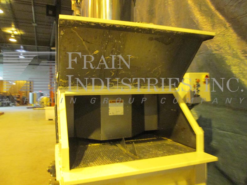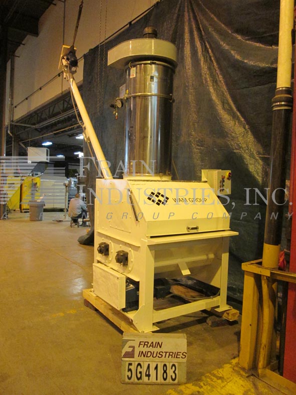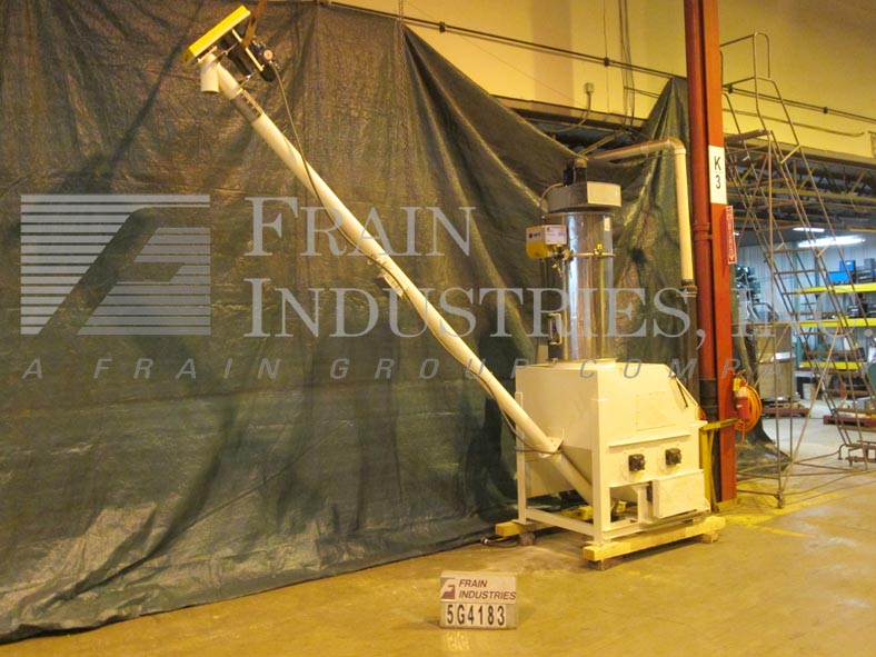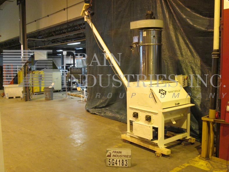 破袋站每小时的速度-取决于材料和应用。配备40“宽x 23”长翻开封面,(18)6½x 3桨,(1)10“直径丝带搅拌机,顶部安装24”直径3 Hp WAM筒式除尘器风机、5“ID”x 204长螺旋给料机4½“直径钻4”中心和放电约140“144”的高度。