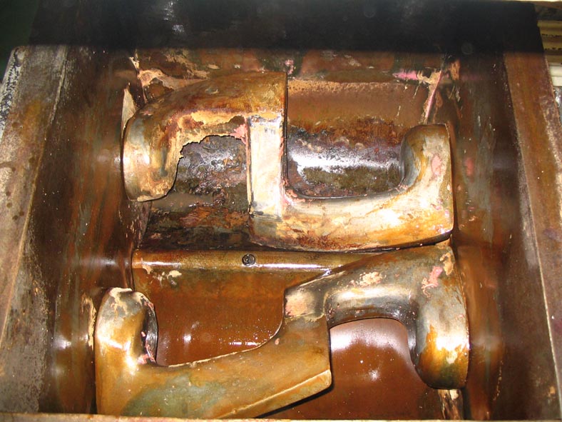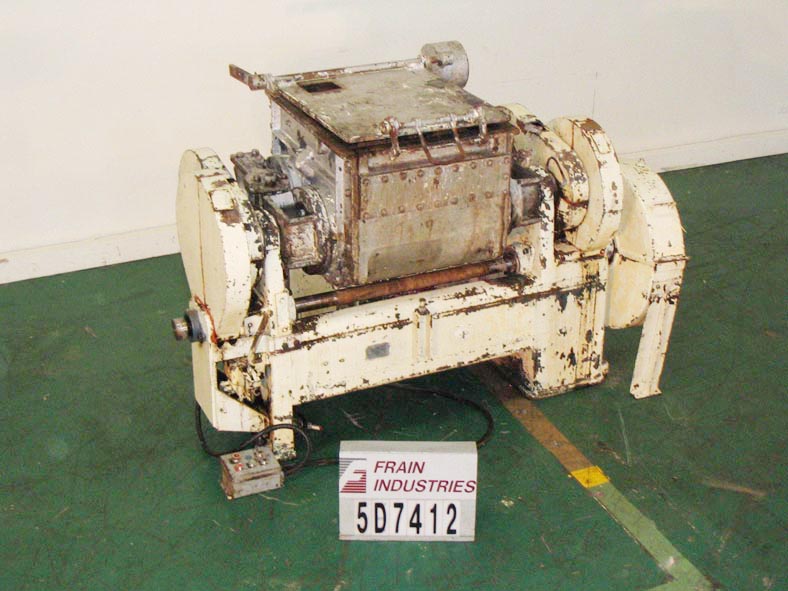 返回所有设备100加仑护套,C/S双sigma混合器。内部混合室尺寸:(26"长x 30"宽x 22"深)。配备铰链翻转顶盖,液压倾斜,和20马力的Allis Chalmers双端驱动。安装在低碳钢底座上。