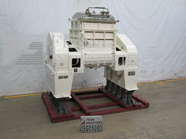 返回所有设备Baker Perkins型号为150加仑,夹套,双臂,Sigma刀片式碗搅拌机,每小时磅产品 - 取决于材料和应用。所有不锈钢接触部件。腔尺寸:37“长x 44”宽x 41“深。配备倒塌夹紧盖,用(2)顶部法兰(2)顶部法兰(1)个现场端口和36”长的不锈钢双Σ刀片。全套夹克有(2)5“OD法兰侧端口,每侧有(4)1/2”螺栓孔,2-1 / 2“中心,2英寸OD螺纹蒸汽端口。16“OD中心底部放电,48”楼层清除。安装在重型(10)腿螺栓下底框架上。