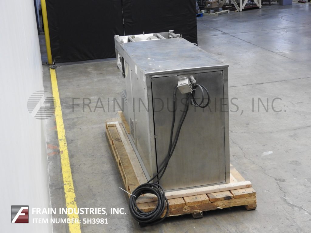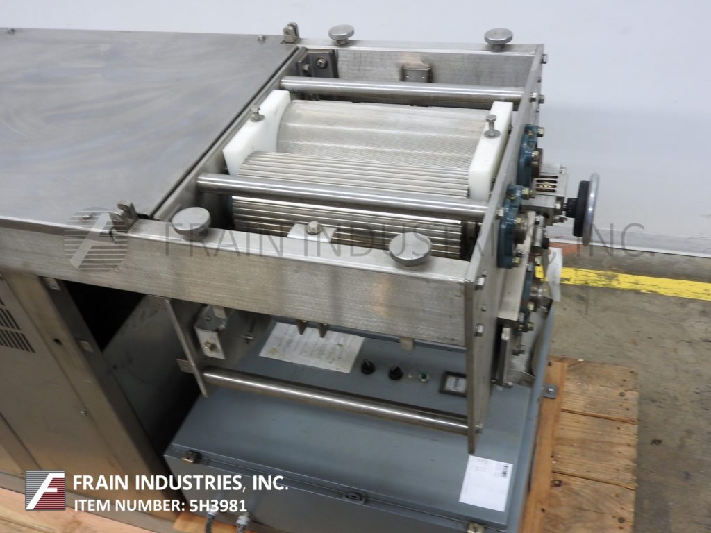 返回所有设备3辊,自动,对转辊,面团压片机和挤出机每小时产品的数量-取决于材料和应用。配备(2)8"外径x 18"长的顶部瓦楞,滚轮和(1)12"外径x 18"长的光滑底部滚轮与开放框架设计。控制面板有(2)A/B变速控制器和(2)小时计与启动和停止按钮控制与变速控制刻度盘。安装在重型基础框架。