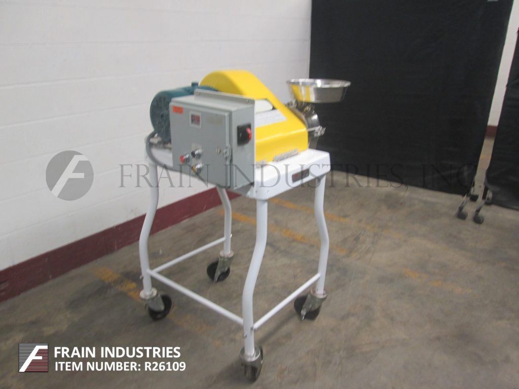 返回所有设备FITZPATRICK,型号JT,316不锈钢主体磨机。每分钟生产率 - 取决于材料和应用。配备12“ID X 3”深304不锈钢进料平底锅,配备2.75“ID产品端口,(12)摆动刀撞击刀片,屏幕面积为2英寸宽x 16”长8“长x 2”宽底产品放电36“地间隙。启动,停止和重置按钮控制并安装在带锁定脚轮的底座上。