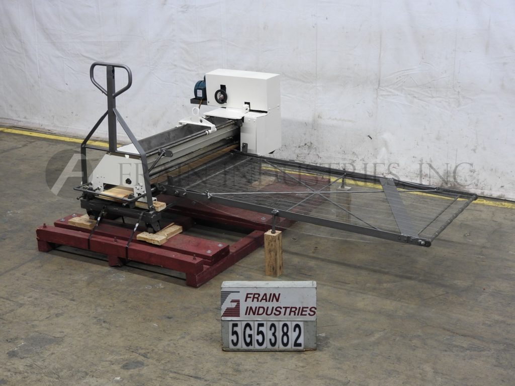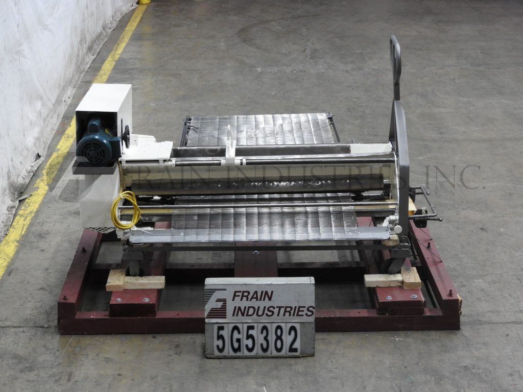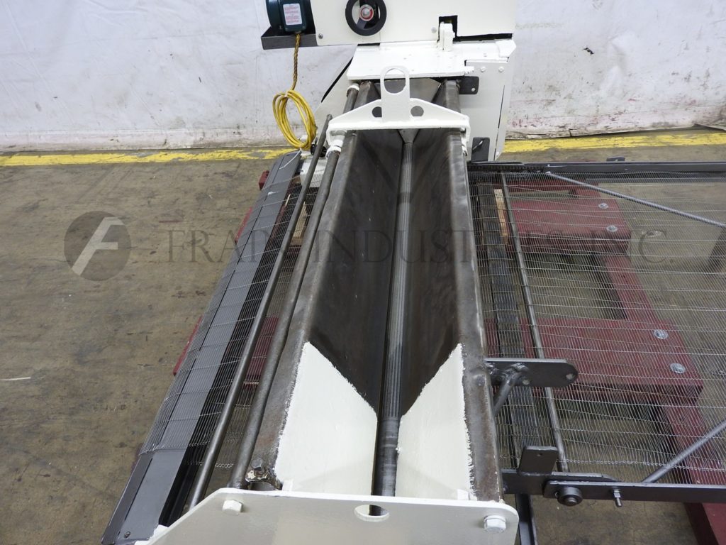 顶部给料机,糖,颗粒给料机,和网状输送机。配备了38"宽x 105"长不锈钢丝产品带,8¼"宽x 64"长橡胶带走带,46"宽x 8"长x 6"深槽旋转沉积底部。该单元由3 / 4马力电机与变速变速箱和安装在推车脚轮。