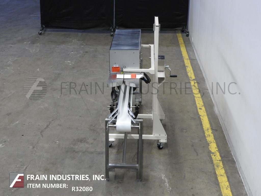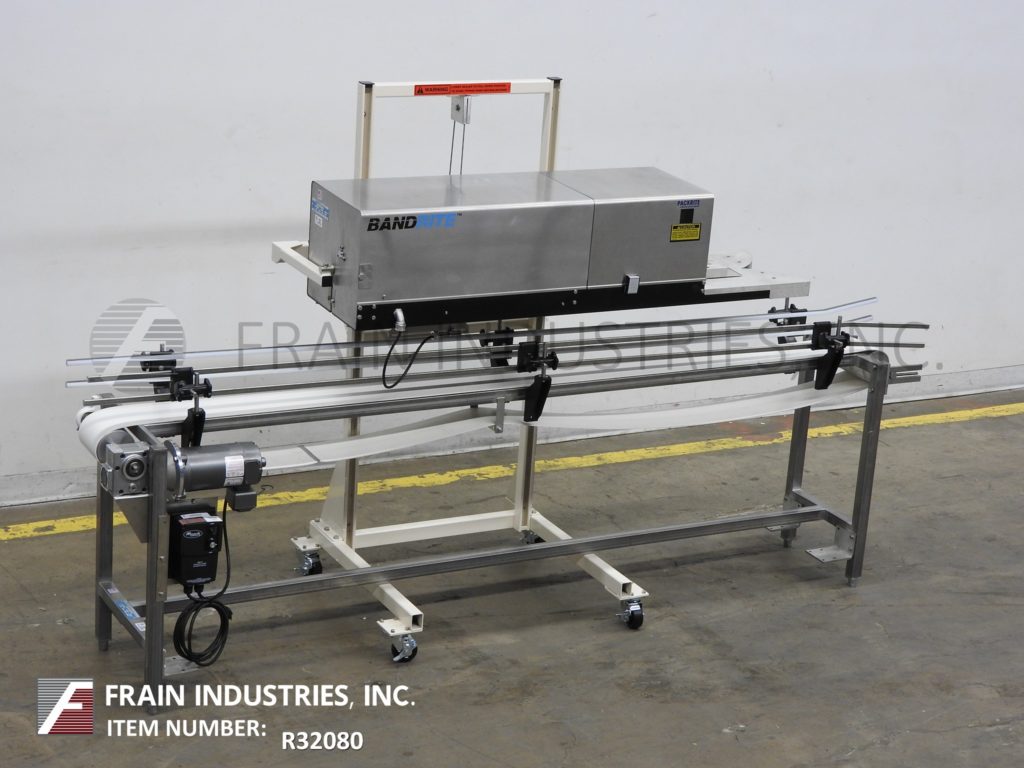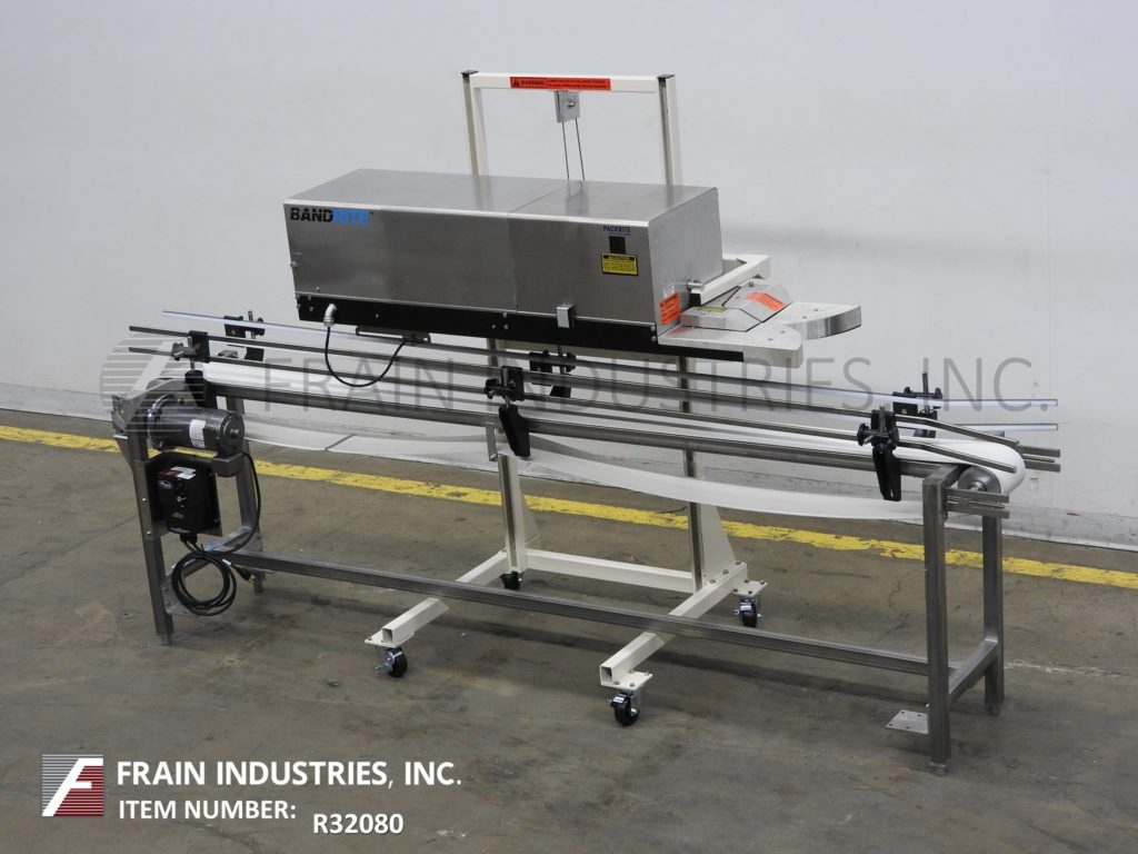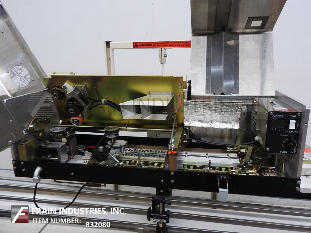 返回所有设备Bandrite, 6000型,自动,连续运动,带式,袋封口机。额定范围为0至750英寸/分钟,产品数量取决于材料和应用。配备了袋修剪站,1线编码器,3 / 4“宽热密封和冷却棒,角度密封和倾斜离开驱动头,无标记输送带与可调运行速度和温度控制高达600华氏度和手摇曲柄可调不同大小的袋。安装超过6“宽x 96”长的皮带输送机与可调导轨和动力由1 / 4马力驱动。