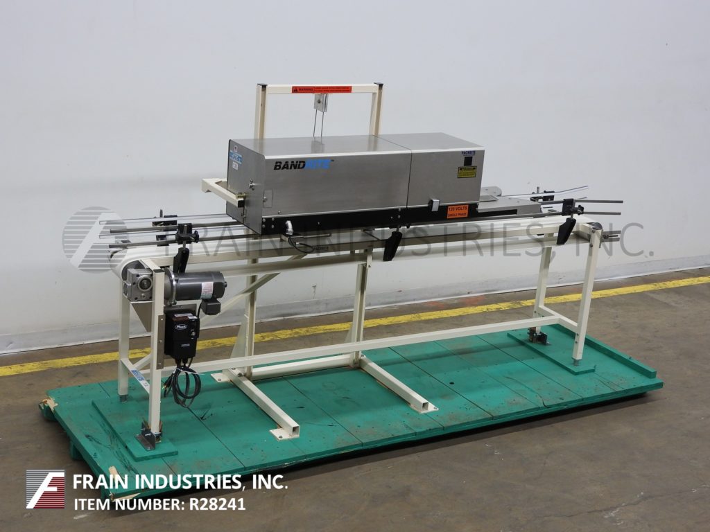 返回所有设备Bandrite Model 6000,自动,连续运动,带式,袋子密封剂从0到750英寸/分钟的袋子数量,袋数 - 取决于材料和应用。配备96“长X 6”宽袋式输送机,3/4“宽热密封杆和冷却杆,倾斜密封和倾斜驱动头,带有袋子装饰站的非标架带,1个线路编码器。控制器可调节运行速度和温度控制高达600°F.手工曲柄高度可调节框架,适用于不同尺寸袋。安装在底架上,带脚轮。