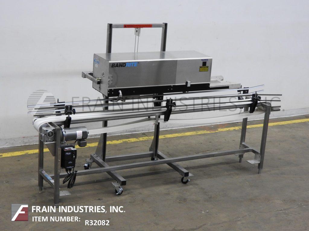 返回所有设备Bandrite,型号6000,自动,连续运动,带式,包封口机。从0到750英寸每分钟评定,产品数量 - 取决于材料和应用。配备袋式装饰站,1个线路编码器,¾“宽热密封和冷却杆,倾斜密封和倾斜驱动头,无标记载体带,可调节的运行速度和温度控制高达600°F。和手柄可调节。不同的尺寸袋。安装超过6英寸宽的x 96“长带式输送机,可调节导轨,由¼惠普驱动器供电。