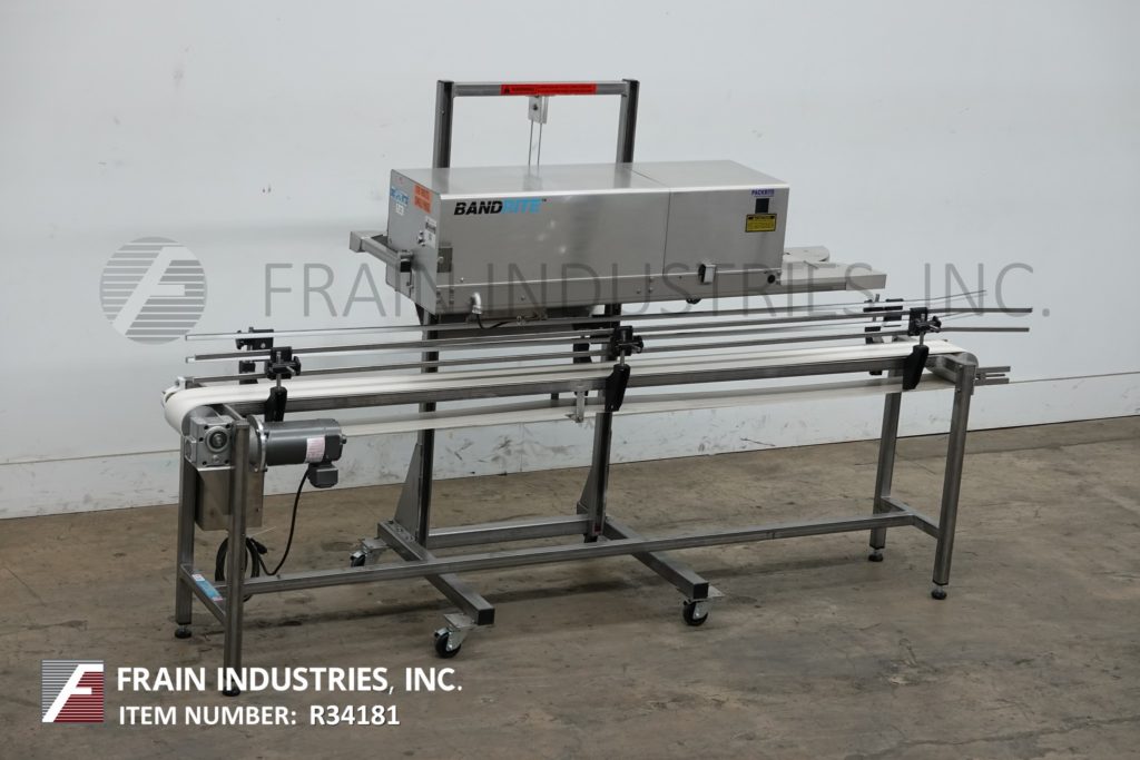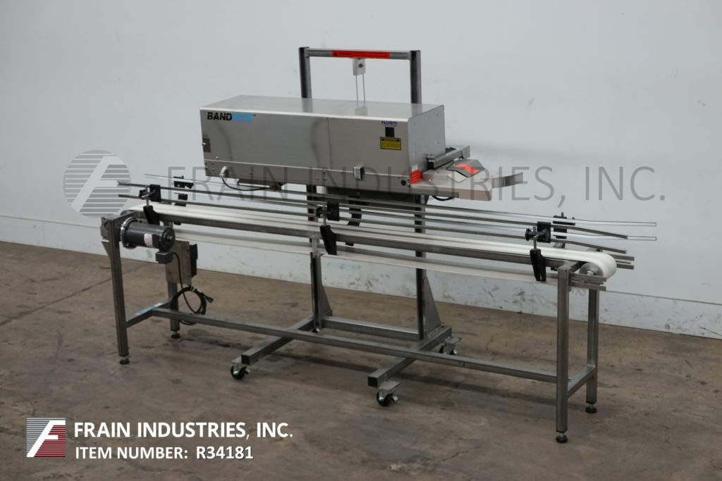 返回所有设备Bandrite型号6000,自动,在线,带式袋封口机额定从0到750英寸每分钟袋的数量-取决于材料,应用和操作者的灵活性。配备角度密封倾斜头有3 / 4“宽热密封和冷却棒无标记输送带,可调运行速度和温度控制高达600°f。袋修剪站,1线编码器和手曲柄高度可调不同大小的袋。加热和冷却开关,温度控制器和速度控制拨号。安装超过6“宽x 96”长的不锈钢带式输送机可调导轨和动力由¼马力驱动。