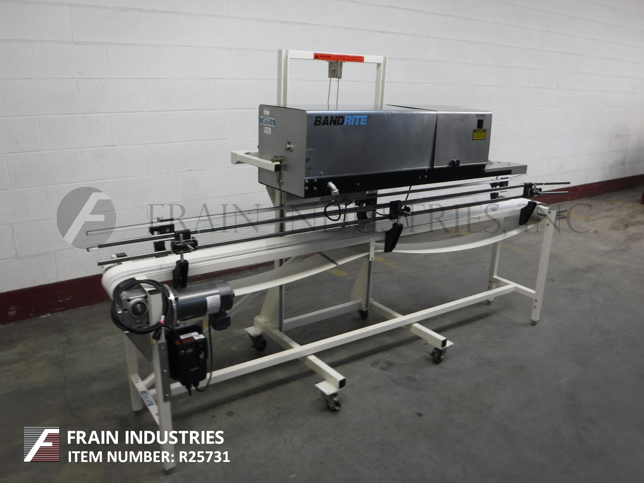 返回所有设备Bandrite型号6000,自动,连续运动,带式,袋封口机额定从0到750英寸每分钟产品数量-取决于材料和应用。3/4"宽热封条和冷却条,斜角封口和倾斜驱动头,无标记输送带可调运行速度和温度控制高达600度f。手摇高度可调不同大小的袋和安装在脚轮上的移动,以滚动任何现有的输送系统。