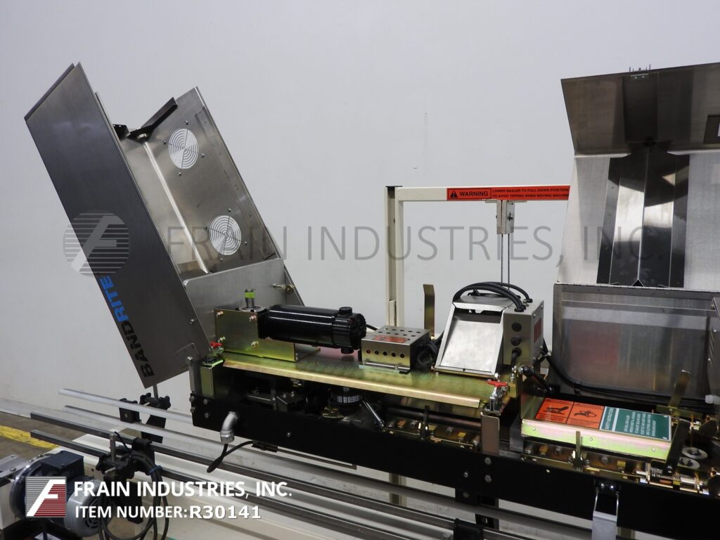 回所有设备Bandrite,模型6000,右对左自动连续运动,不锈钢,带样式,包封器速率从0至750英寸乘数产品-视材料、应用和运算符弹性而定装满包修剪站、1行编码器、3⁄4宽热密封栏和冷却栏、角密封倾斜驱动头带、非标记载波带可调跑速度和温度控制达600德弗手柄高度可调换大小不等的包架设6个宽x100长带传送器并配有可调整向导轨迹并用1⁄4Hp驱动电源