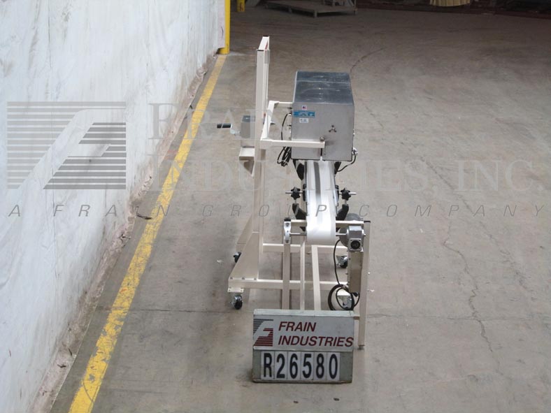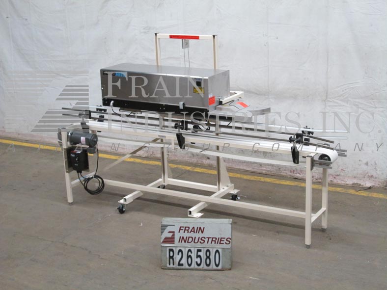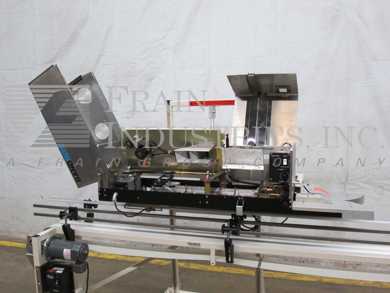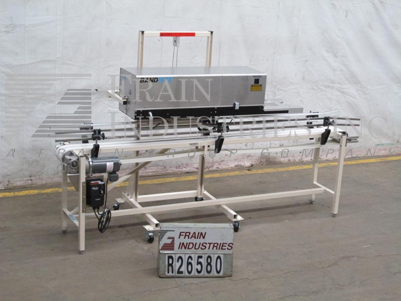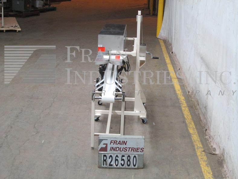 Back to All EquipmentBandrite, Model 6000, automatic, continuous motion, band style, bag sealer. Rated from 0 to 750 inches per minute with number of product – depending on materials and application. Equipped with bag trim station, 1 line coder, ¾" wide heat sealing bar and cooling bar, angled sealing and tilt away drive head, non-marking carrier belts with adjustable running speeds and temperature controls up to 600 Deg F. Hand crank height adjustable for different size bags. Includes a 6" wide x 100" long belt conveyor with adjustable guides and powered by a ¼ Hp drive.