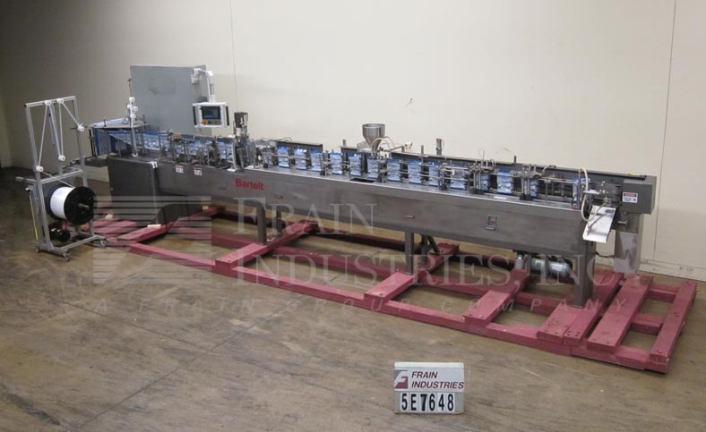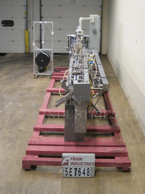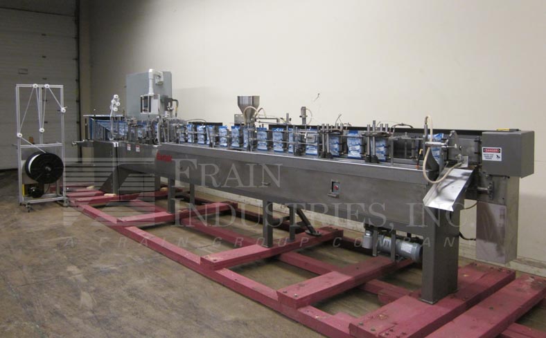 返回所有设备自动,卧式成型,填充和封口机目前设置为pouch�s与拉链站立。袋大小范围:3"至8-3/4"宽度;长度为3"至9-1/2"。配备成型犁,薄膜张力辊,设置在10"中心的17站链袋输送机,双侧密封,切断站,没有袋检测,吸盘式袋开瓶器,顶部密封清洗,热密封条,袋取下。薄膜规格:宽可达26”,3”外径芯上的卷径可达18”。A/B SLC 5/04 PLC摆动臂,触摸板控制和550面板视图。可选填料,螺杆填料,容积填料,秤,零件计数器等。