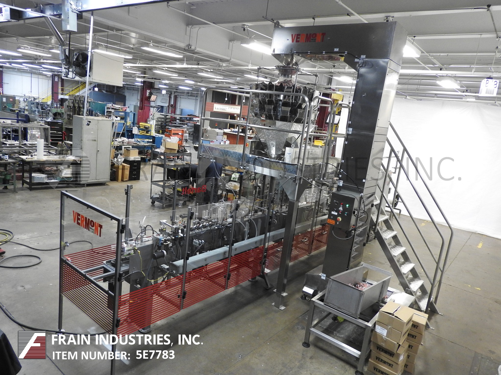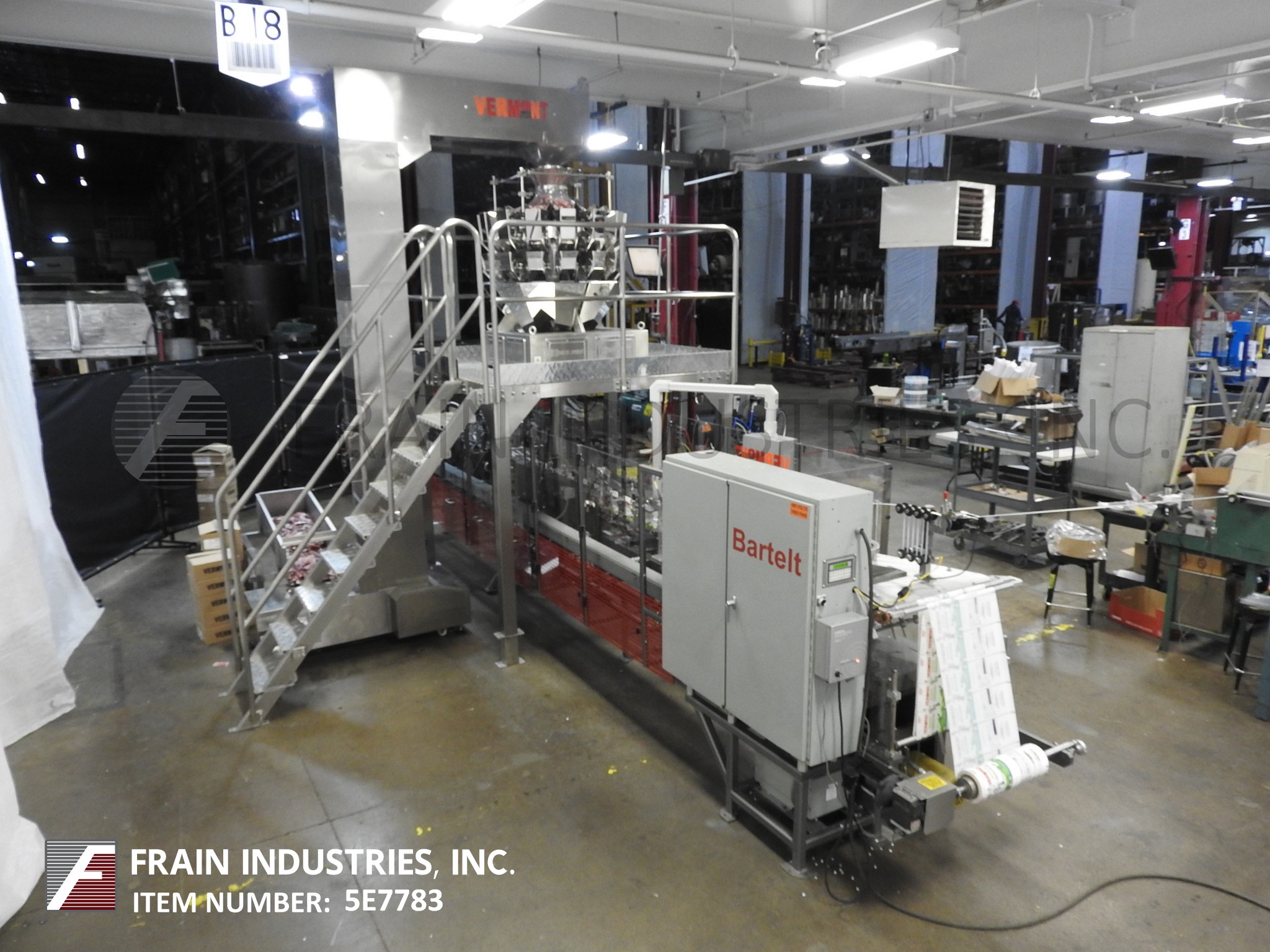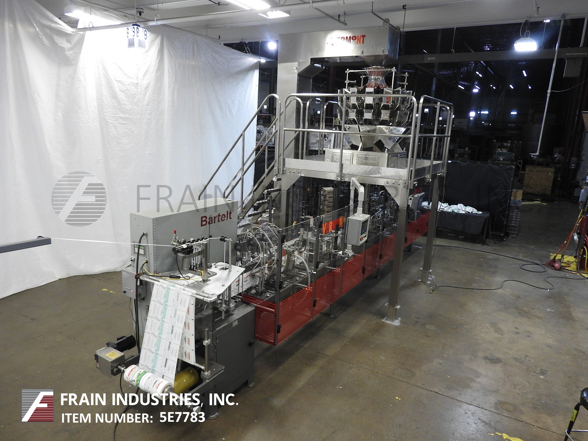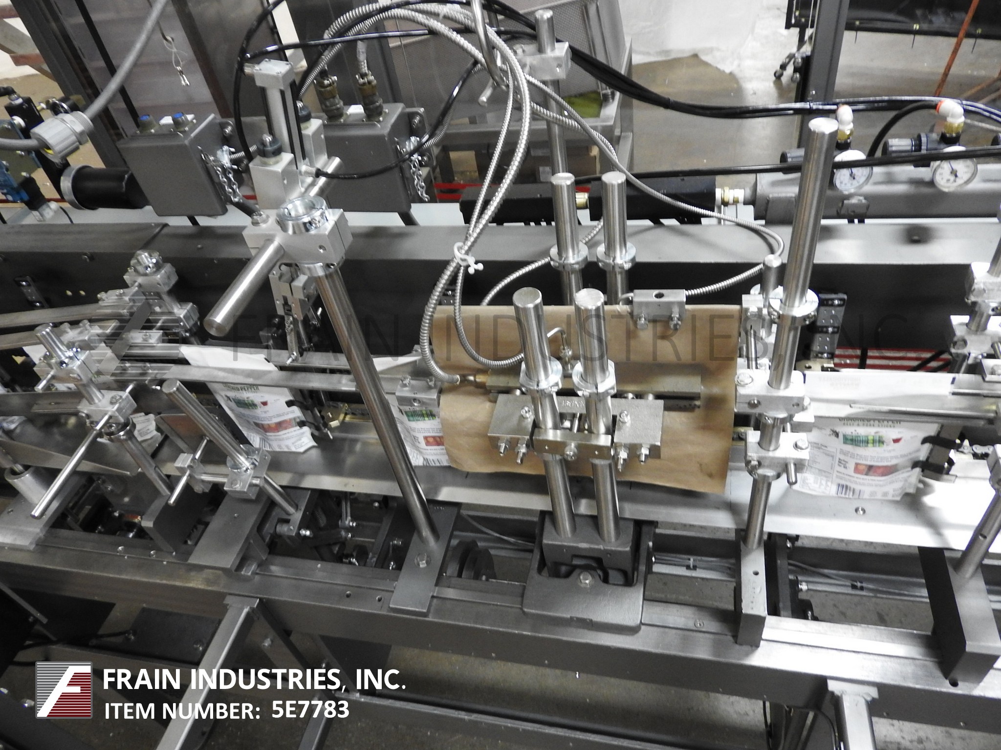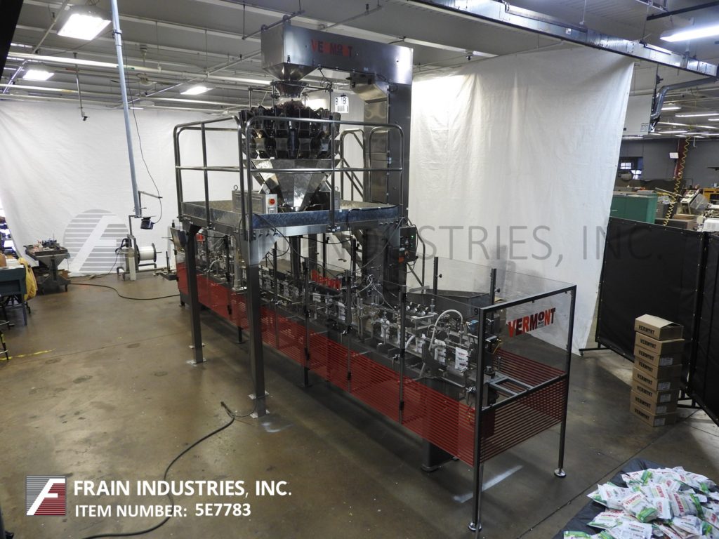 返回所有设备自动,伺服驱动,间歇运动,卧式,f/f/s带不锈钢斗式提升机,平台带星星,14头组合秤。速度10至70 ppm取决于材料和应用。有链袋饲料输送机20站设置在10”中心,形成犁可调驱动电影放松和9 1/2“H张力辊、侧密封,和截止电台,没有袋检测、吸盘风格袋刀,顶部密封清洗、热封口酒吧,和袋传感器,可以处理一个18“OD马克斯胶卷,26”马克斯网页宽度,和3”OD芯。电联锁保护,伺服驱动,A/B SLC 5/04 PLC与摆臂,触摸板控制,和550面板视图。