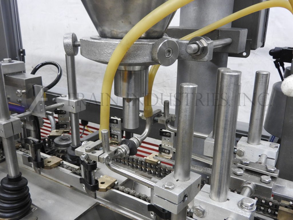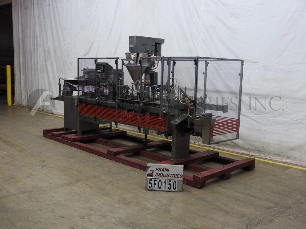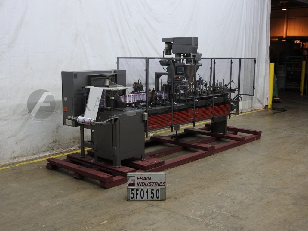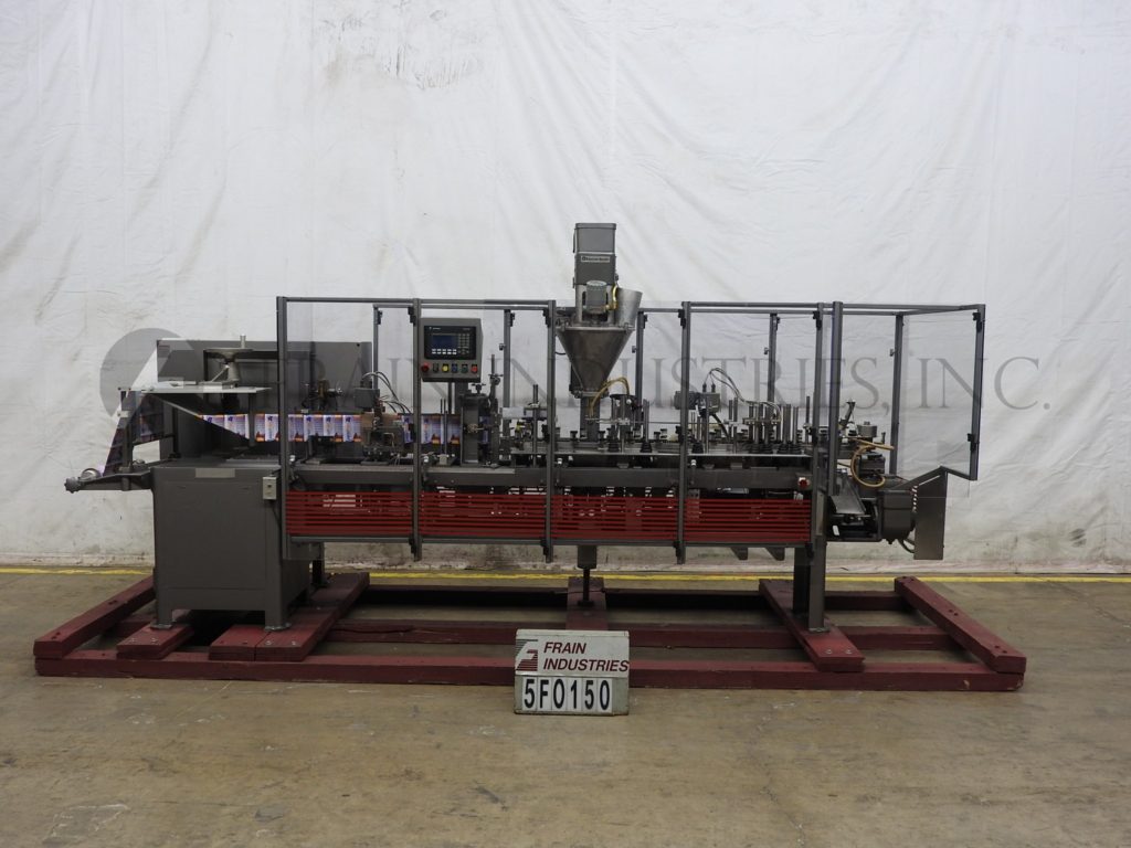 返回所有设备自动,间歇运动,水平,形式,填充和密封。小袋尺寸范围:宽度为2“至4-3 / 4”;长度为2“至9-1 / 2”。配有薄膜成型犁,9-1 / 2“H胶片张力辊,12个夹子袋饲料系统设置在6”中心,侧密封和切断站,无袋检测,双吸盘袋开关,集成螺旋钻填料,顶部密封填料,热封和冷却棒,吸盘拾取站,A / B SLC 5/03 PLC带有面板视图和联锁安全防护。薄膜规格:高达21英寸;直径为3英寸核心。