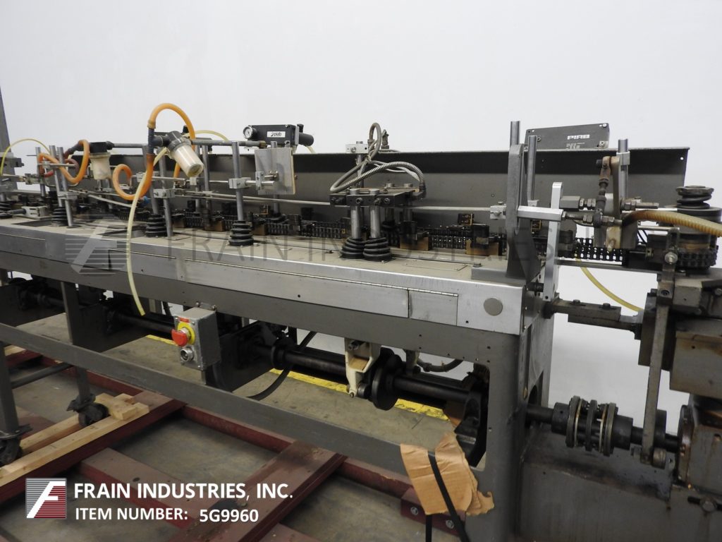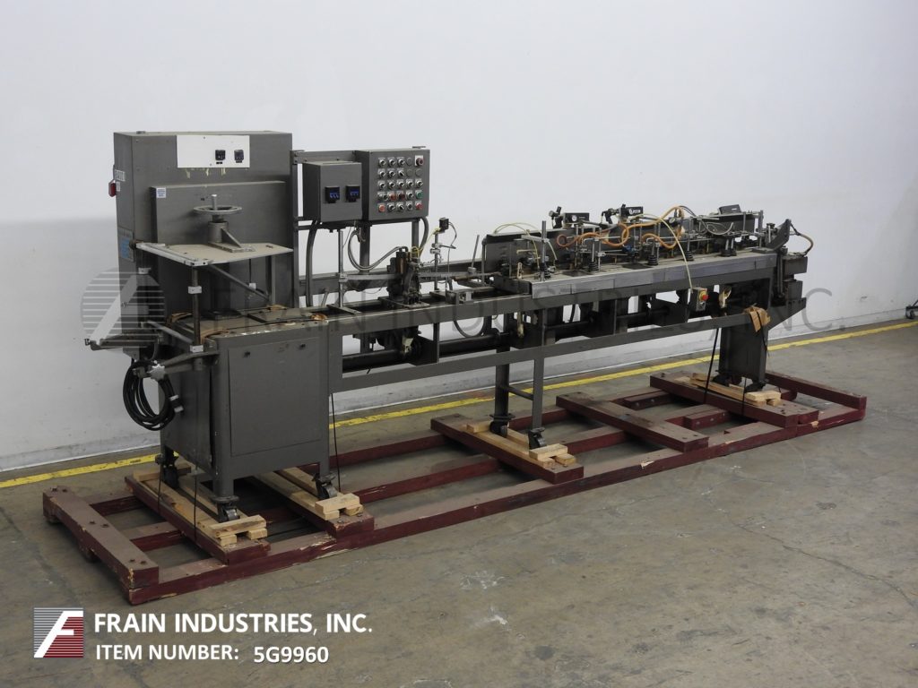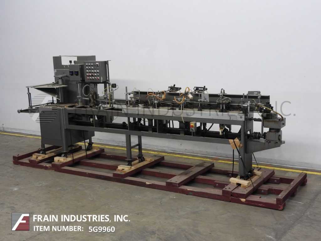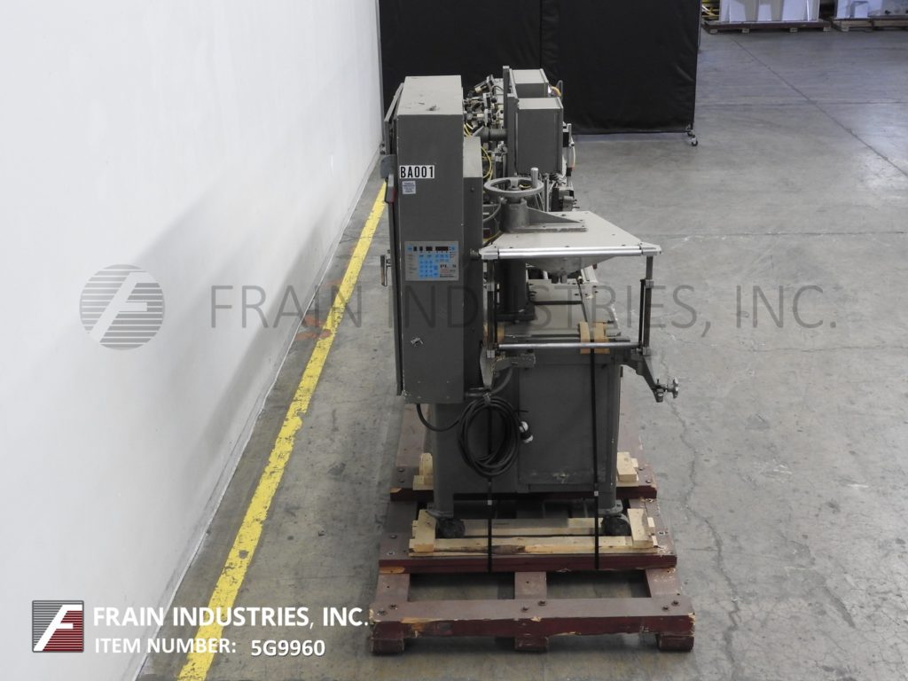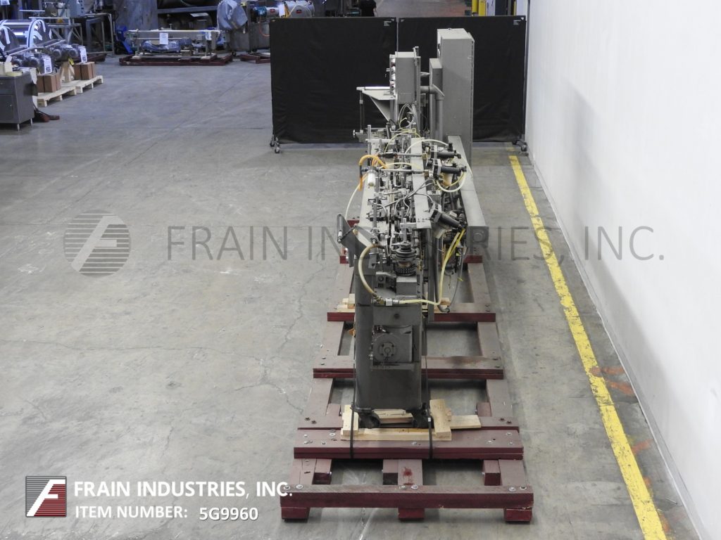 返回所有设备巴特尔IM7-14型,自动,水平,机械驱动,间歇运动,双螺旋,成型,填充,密封袋机额定从14到100袋每分钟-取决于材料和应用。袋大小范围:2"至5-3/4"宽度;长度为2"至9-1/2"。配备了在7英寸中心设置14个工位的链式饲料袋输送机,薄膜成型铲,薄膜张力辊,薄膜侧密封和切断工位,吸盘式袋开瓶器,(2)螺旋填料与纺车顶部袋除尘,和热密封棒与袋取下工位。最大外径为18英寸的胶片卷,最大卷筒纸宽度为20英寸,最大外径为1英寸。控制面板有PLC控制器与搅龙和搅拌器,填料,喷气机,变速,顶部,底部和侧热封控制开关与启动,停止e-停止和网页饲料停止按钮控制。安装在重型基础框架与脚轮。