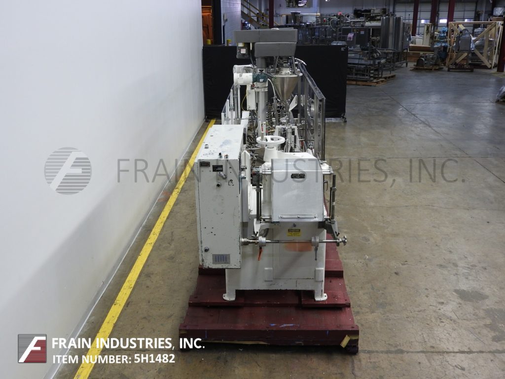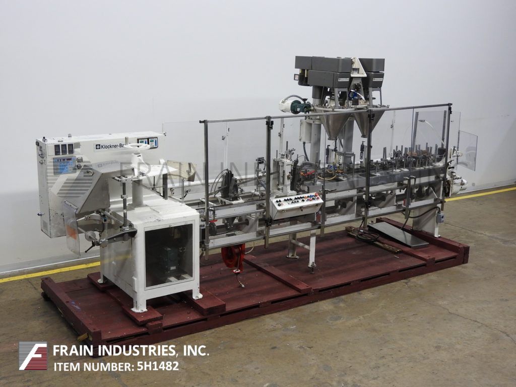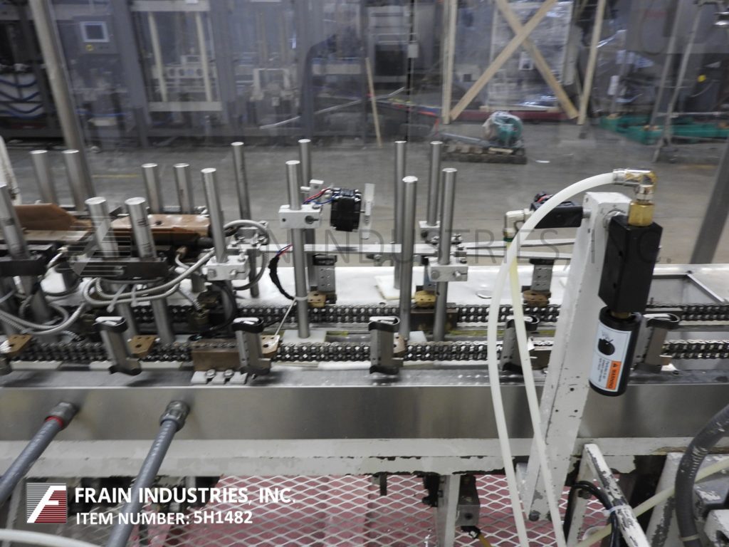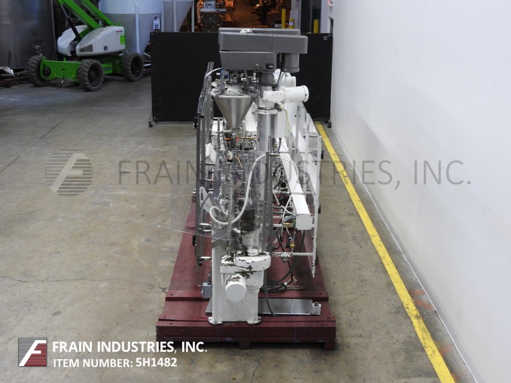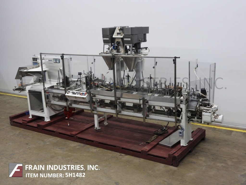 返回所有设备Bartelt Model IM714,自动,水平,机械,间歇运动,螺旋钻,形式,填充,封印机每分钟14至100袋 - 取决于材料和应用。小袋尺寸范围:宽度为2“至5-3 / 4”;长度为2“至9-1 / 2”。配备有14个站点的连锁盒输送机,设置在7“中心,薄膜成型犁,张力辊和袋侧密封,带截止站,吸盘袋开机,(2)螺旋填充物,带有个别控制器,纺车顶部袋尘-off和(2)用袋拾取站的热封杆。18“OD最大薄膜卷,具有20”最大幅材宽度,1“OD芯。控制面板具有螺旋钻,真空,填充头,1和2加热器的PLS控制,以及启动,停止e-STOP和Web Feed按钮控制的登记开/关开关。安装在重型基础框架上。