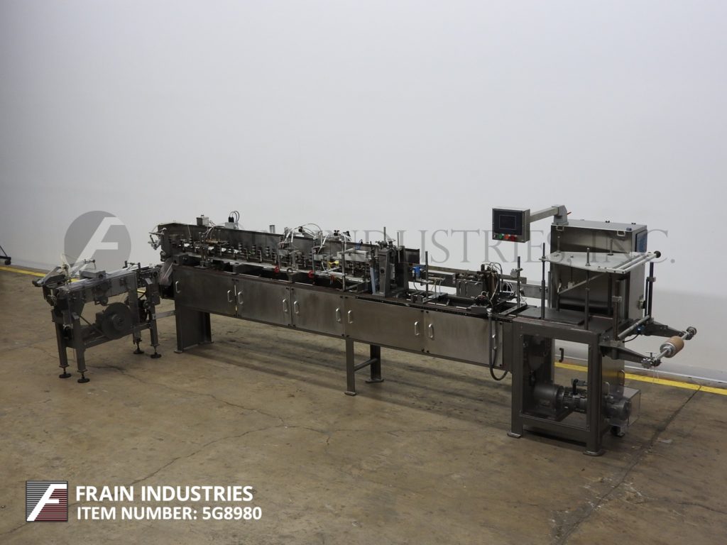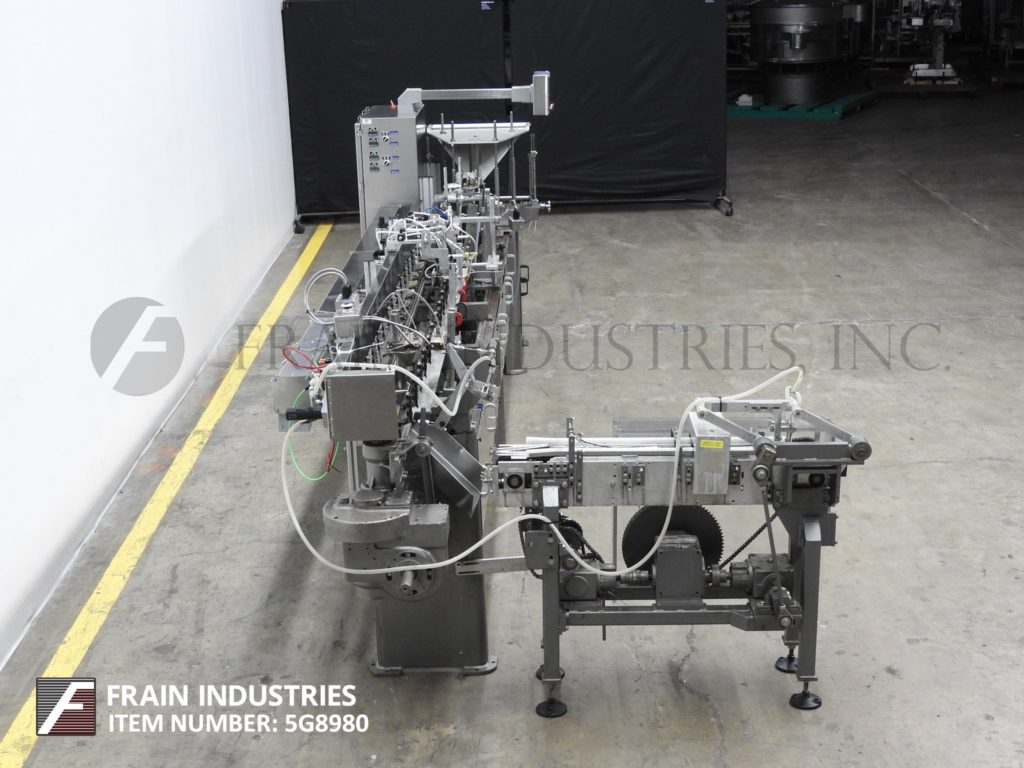 返回所有设备Bartelt,型号IM7-14,自动,水平,电凸轮,间歇运动,形式,填充,封印机。每分钟10至100个循环(20至200个袋子) - 取决于材料,应用和机器配置。小袋尺寸范围:宽度为2“至5英寸”;长度为2“至9½”。配有7“中心的袋子饲料链系统,成型犁,薄膜张力滚筒,登记,侧密封,切断站,(14)夹站,吸盘式袋开瓶器,(2)带气动阀门的灌装车站,顶部加热密封杆和袋拾取站,带分切液,用于双工套餐。薄膜规格:18“OD最大薄膜卷,具有21”最大幅材宽度,3“OD核心。控制面板带Koyo控制器,触摸屏显示,按钮开始/停止和数字温度控制器。安装在重型基础框架上。