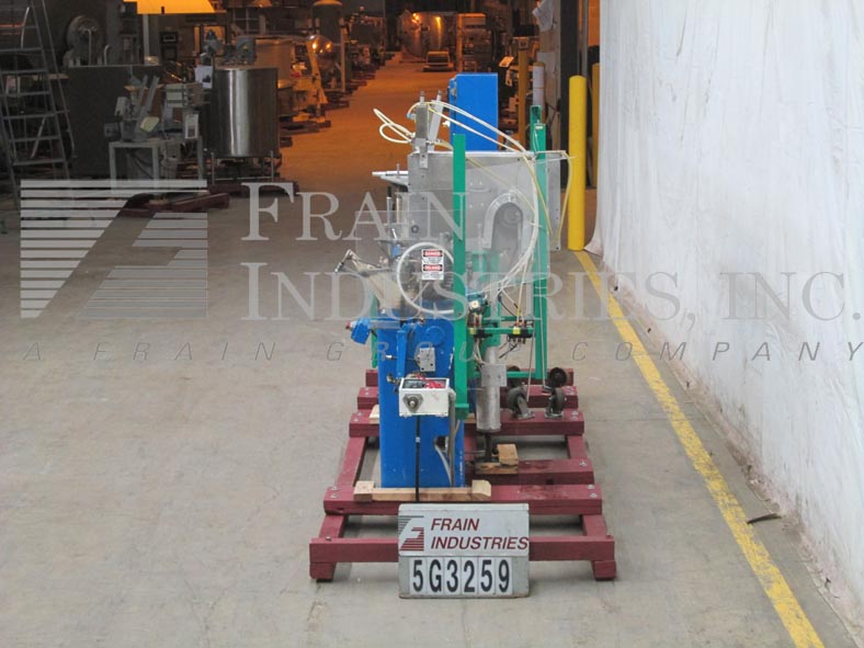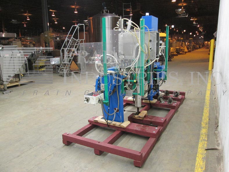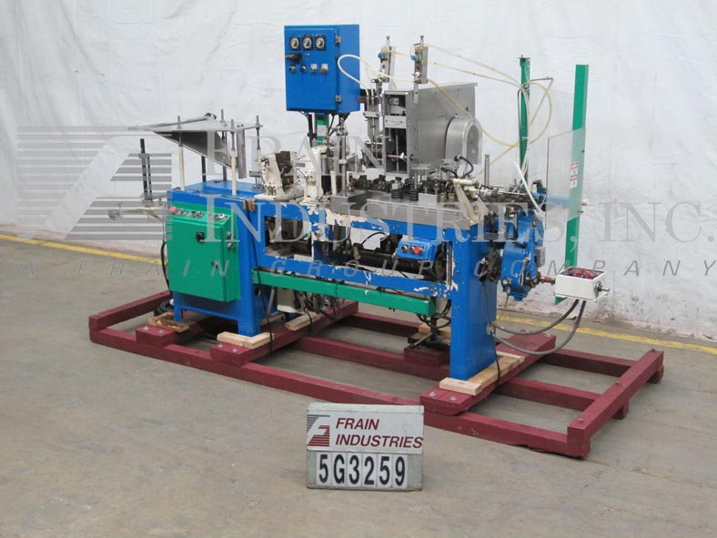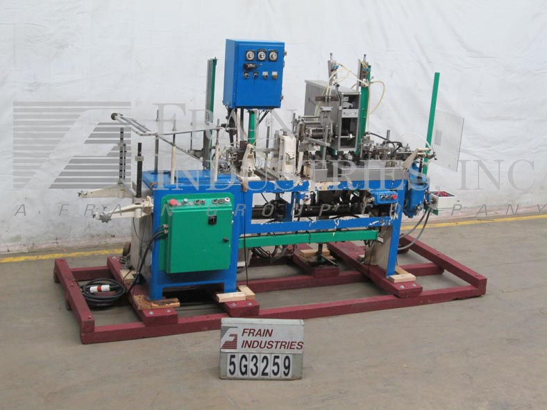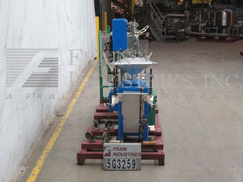 返回所有设备巴特尔IM4-10型,紧凑,水平,机械驱动,间歇运动,形式,填充,密封,机器,额定20至60袋每分钟-取决于材料和应用。最大膜卷宽度为12英寸,最大袋宽为2.75英寸。薄膜通过成型头进入一个侧面和底部热封口机由6"辊拉。分开的袋打开与鼓风机总成和旅行在夹饲料链,10个站设置在4"中心。毛巾灌装头采用(2)Hibar灌装泵双喷嘴2次灌装。摇杆组件在进入最终密封区域之前关闭袋顶部。控制面板有保护覆盖,加热器和真空的温度开关,也为运行/慢跑和眼睛复位按钮的拨动开关,驱动启动/停止和e -停止。安装在重型基础框架。