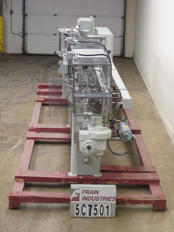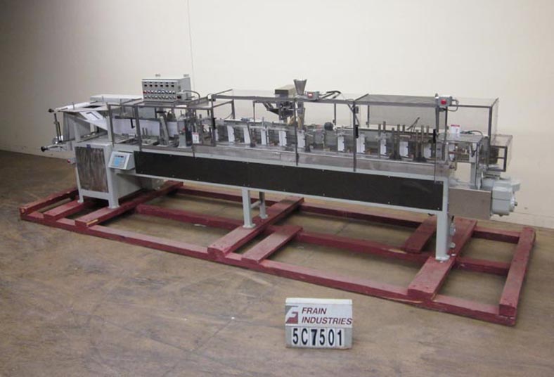 返回所有设备全自动间歇运动卧式/填充/密封机能够速度快到每分钟70包。封装尺寸范围:(高度)2“至11”(宽度)2“至7-3 / 4”,最大幅材宽度为26 1/8“W,缠绕在3”核心上。配备Speedee容量杯填充物,Delta底部密封站,用于“站立”风格袋,水平拉链层压站和ElectRoCam PLS控制系统。