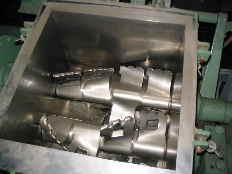 2 cuft。(17加仑),304 S/S,夹套双臂搅拌机与咀嚼刀片。内室尺寸:16" x 16" x 15"。配有平衡盖,2"外径螺纹中心底部卸料,液压碗倾斜,和10 HP GE驱动电机。安装在坚固的框架上。