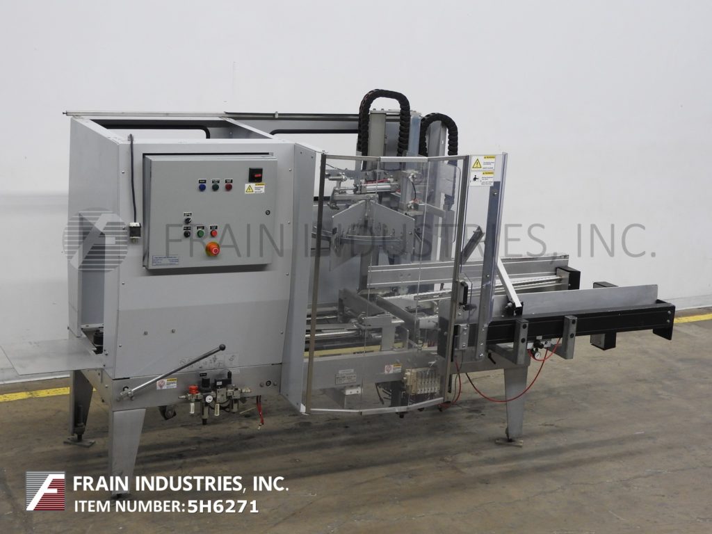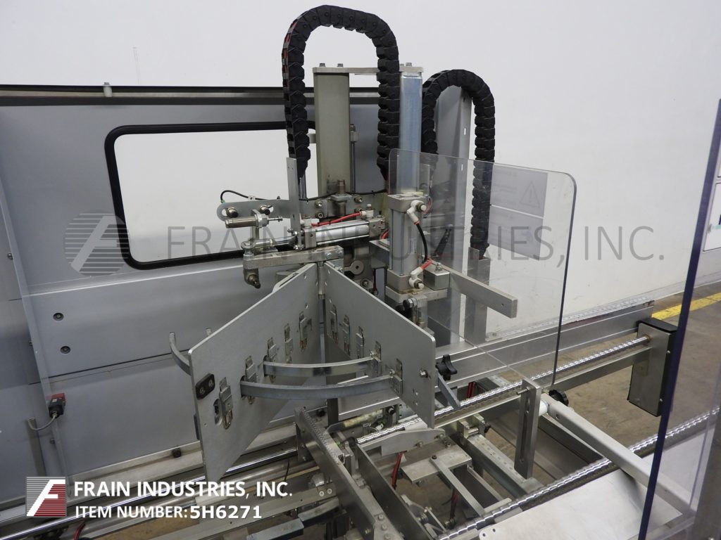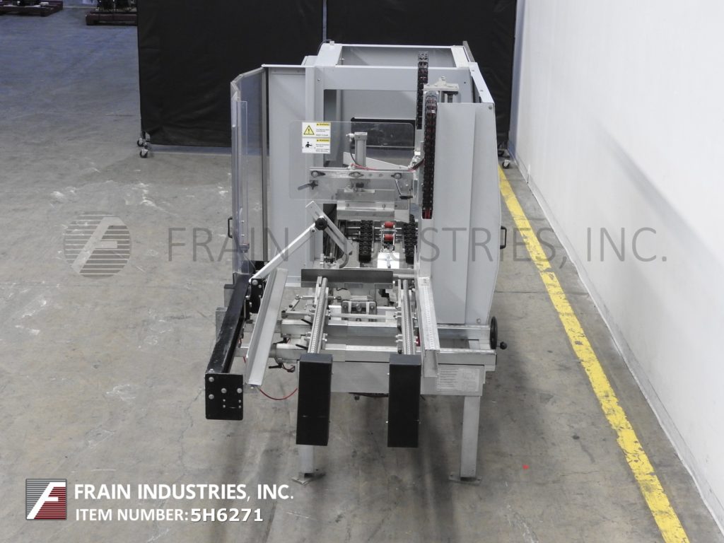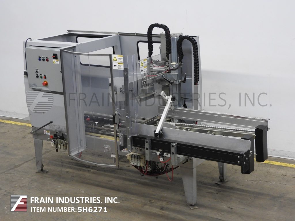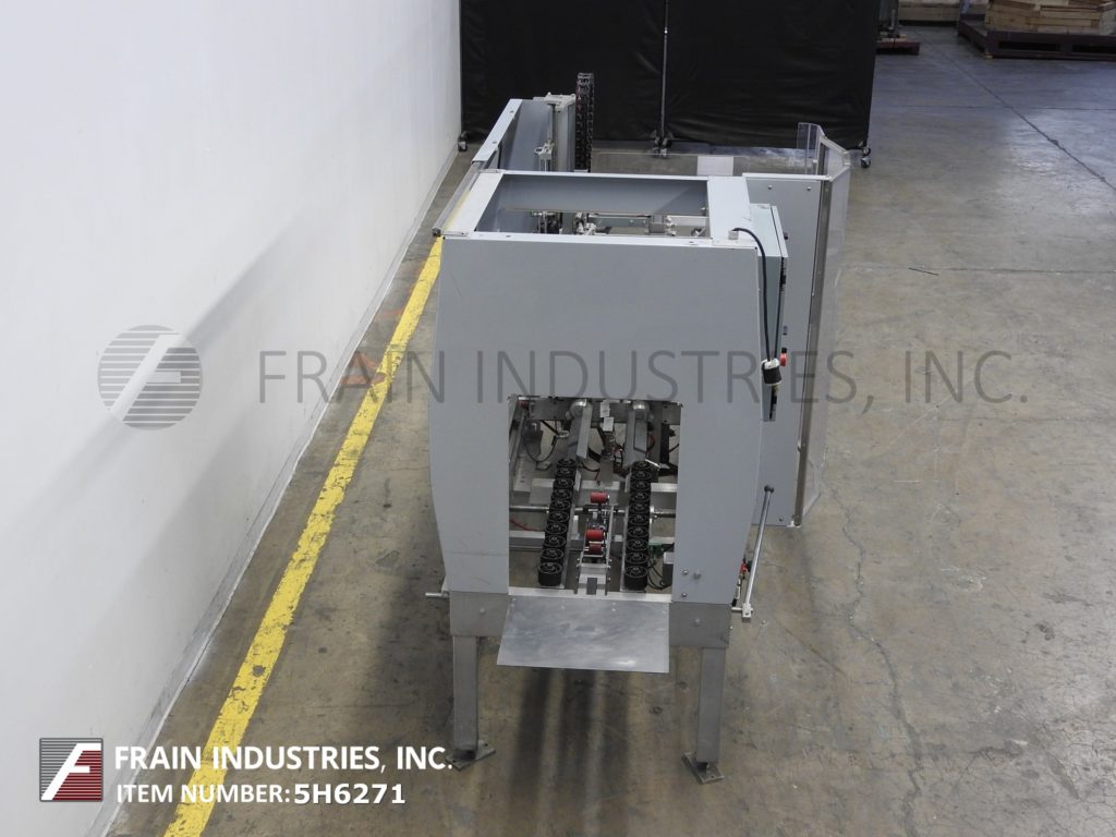 返回所有设备Belcor,型号615T,自动,在线箱安装和底部胶带封口机。根据材料、应用和机器配置的不同,额定每分钟5 - 15个病例。外壳尺寸范围:6"至24"长度;宽度为5"至17";深度3½”至16½”。配备48"长动力空白盒杂志,往复销和穹壳形成板,小和主要皮瓣关闭,推杆和是手曲柄可调底部2"磁带头。控制面板有按钮启动/停止控制。安装在(4)带有安全门保护的腿架上。