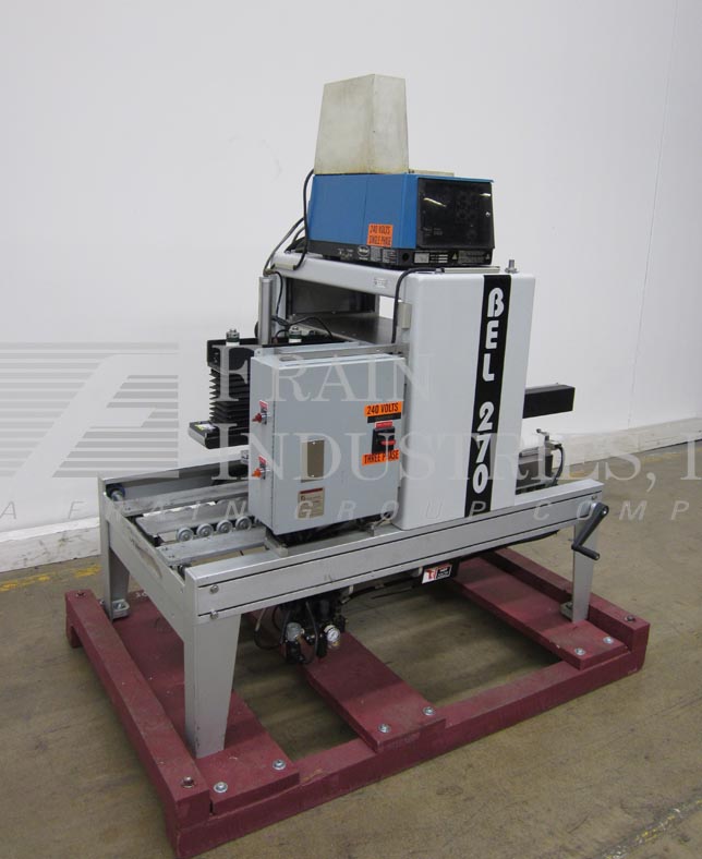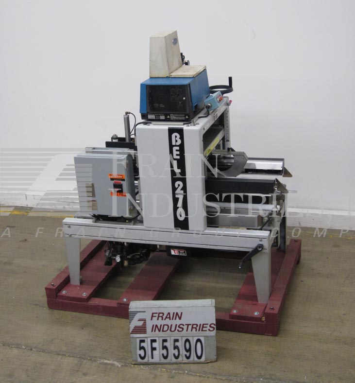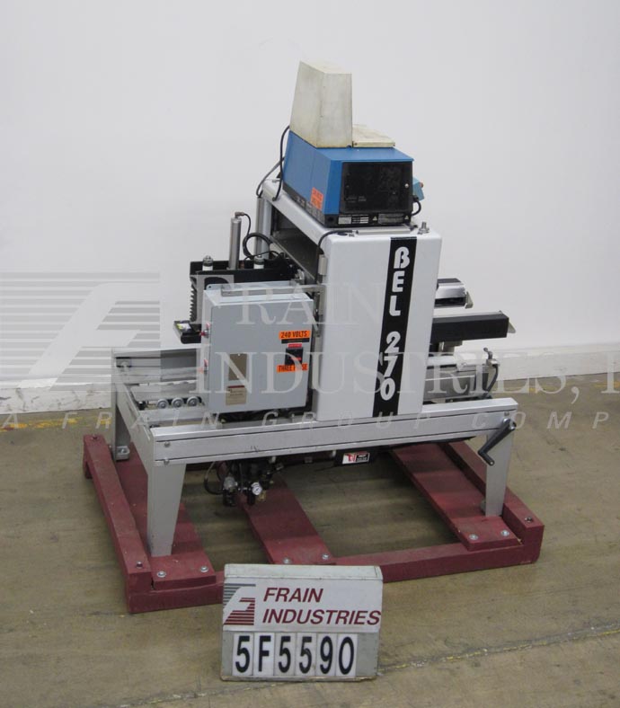 返回所有设备Belcor 270型,自动,统一,顶部/底部,热熔外壳封口机额定从5至25箱每分钟-取决于材料和应用。外壳尺寸范围:8"至20"长x 6"至15"宽x 4-1/2"至15-3/4"高。配有滚轮进纸,无箱/无密封,(2)32英寸长× 2英寸高,侧箱转移皮带,Belcor snap文件夹安全襟翼折叠,热熔胶系统,可调节高度和宽度手动曲柄。带有启动/停止按钮和温度控制器的控制面板,安装在底座上,具有可调节高度的螺丝腿。