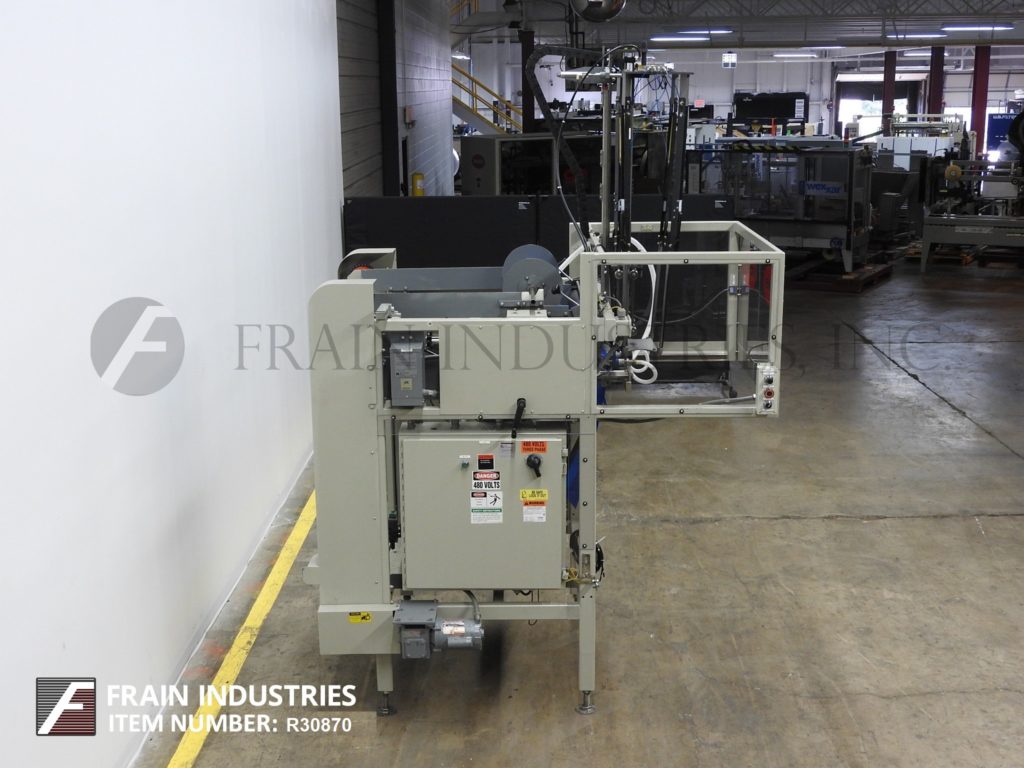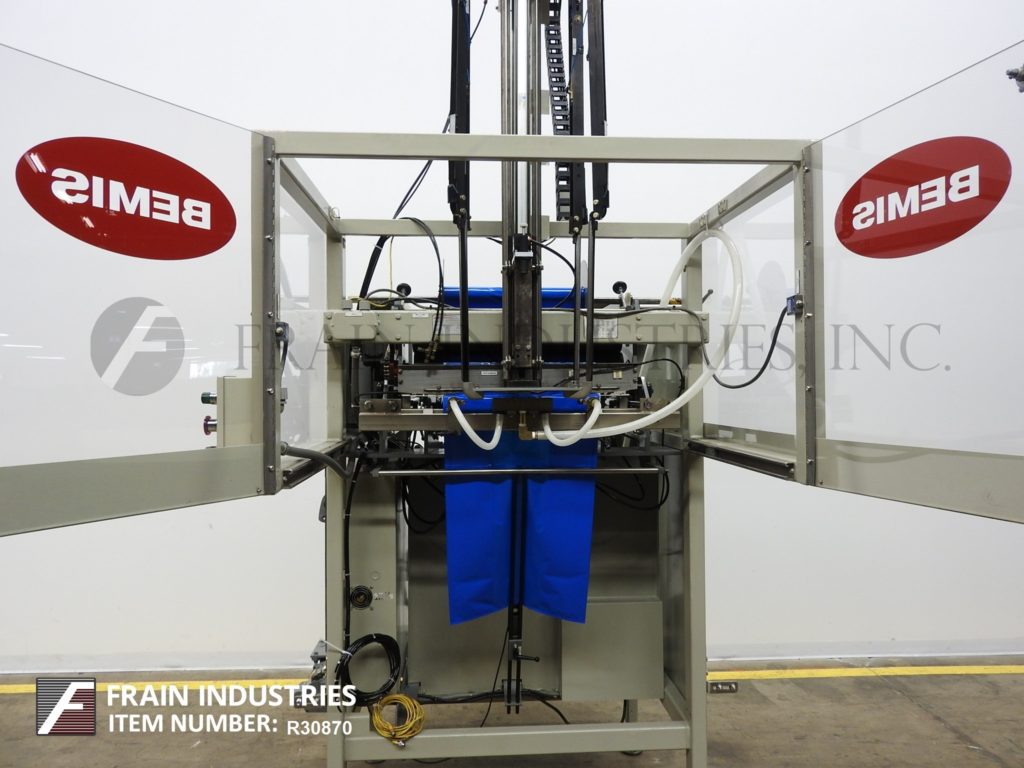 返回所有设备Bemis 1575型自动装袋机,每分钟可装5 - 15袋,具体取决于材料和应用。Case size range: 8" to 20" in Length;4"至16"宽度;高度10"至22"(顶部襟翼处于垂直位置)。袋大小相对于情况:长,宽,深+5"到+7"。配有真空取放器、开袋器、单冲压式插袋器和带独立真空泵的缓冲袋。袋辊规格:直径可达14英寸;宽度可达27-1/2";1-1/2"外径芯。控制面板有A/B CPU控制器,带机器和袋送进/关闭开关,启动/停止按钮控制。 Mounted on height adjustable base frame with Lexan safety guarding.