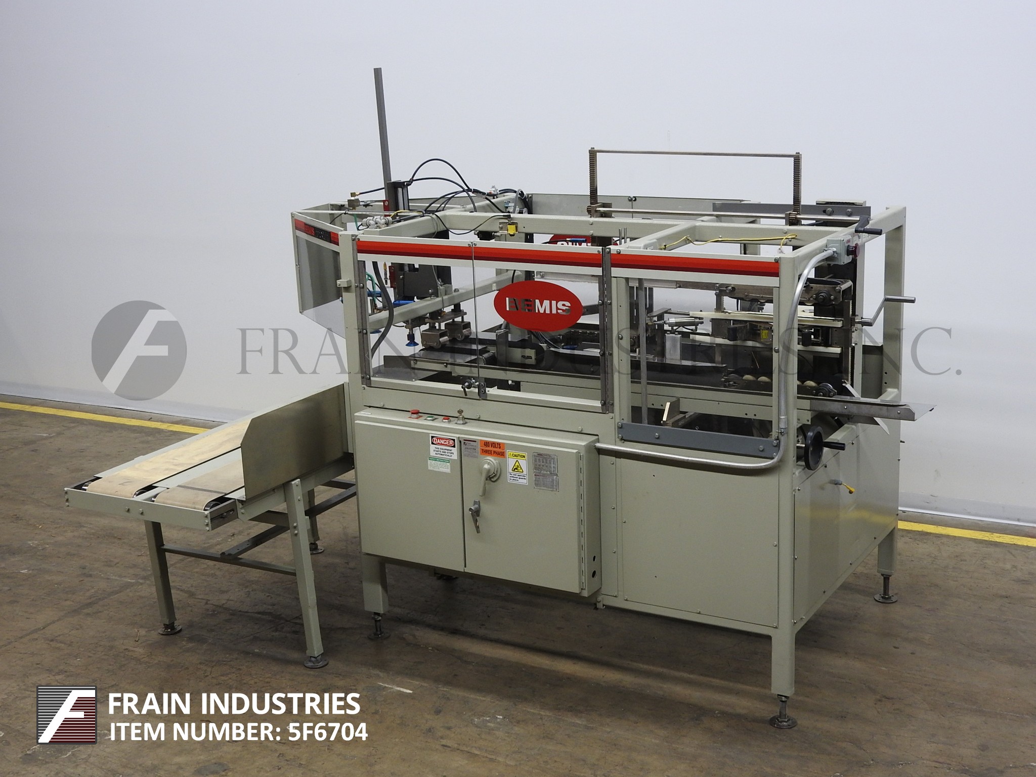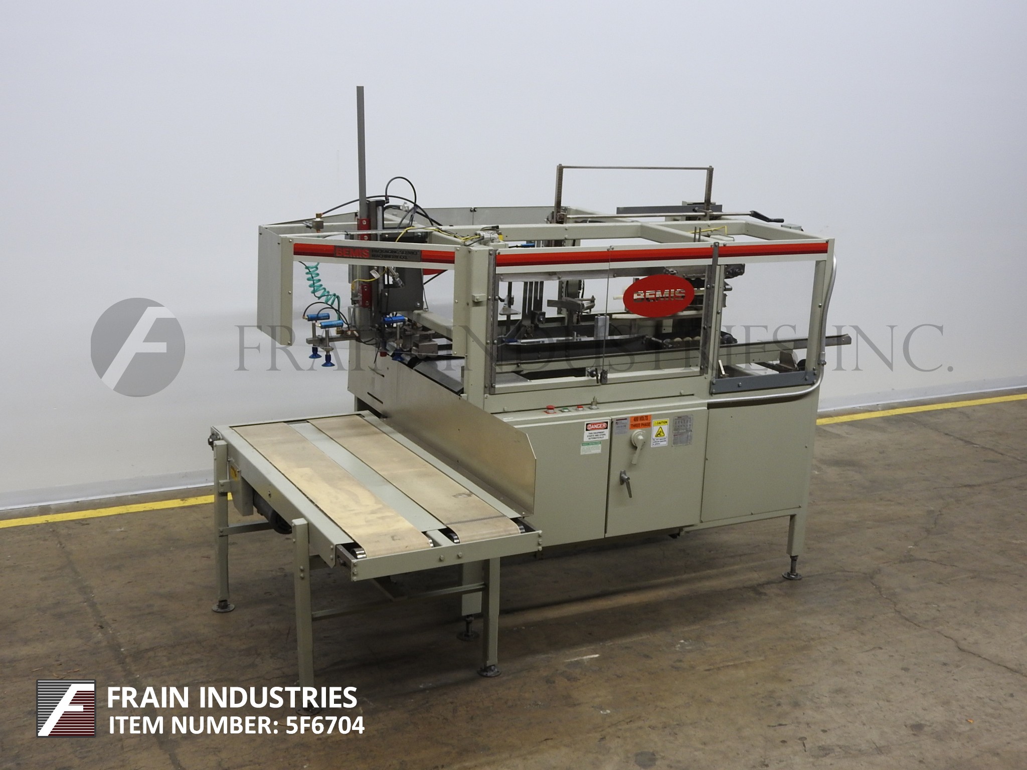 返回所有设备Bemis 1517型,自动外壳安装机,底部锥度额定为每分钟4到16个外壳,速度取决于材料和应用。Case size range: 7" to 24" in length, 5" to 16" in width;深度6-1/2“至24”。配备72"长x 26"宽自动双皮带200容量空白盒杂志,相对的真空吸盘在安装站pic n地方和打破分线,重型饲料皮带积极的情况控制,行走拐杖的情况运输,小和主要皮瓣关闭器,手动曲柄可调方正装置2"侧安装底部密封胶带头,最大直径12",外径3",PLC控制器,安全保护,启动和停止,安装在基座架与调平腿。