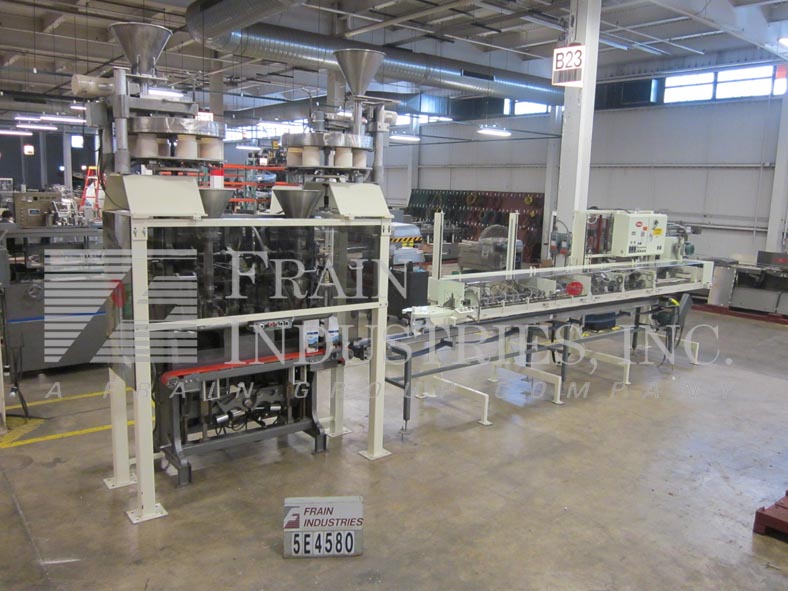返回所有设备Bemis / Doboy完整的粉末袋灌装,密封和捆扎线额定20至40袋每分钟-取决于材料和应用可调重量范围从2磅到10磅。配备Bemis FF-108(2)封头,上料灌装机,Doboy GS1000热胶封袋机。大湖16550-37CB收缩捆扎机,产品整理器,单边产品冲压臂,37"宽密封颚。五大湖MP20/40/60/C4收缩隧道40"宽x 20"高开口x 60"长腔132"长x 39"宽尼龙网传送带。最后一袋5磅面粉