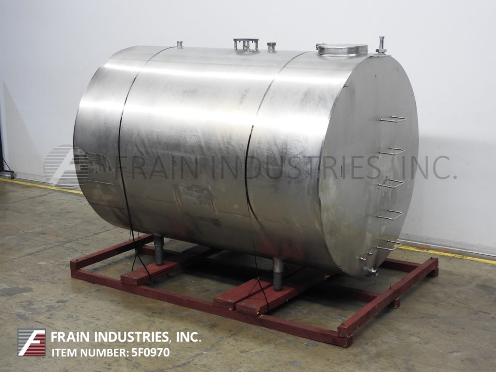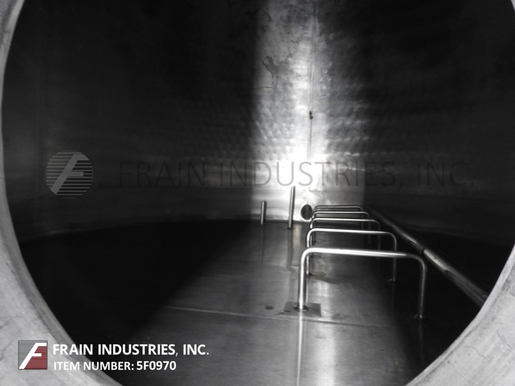 返回所有设备Berco Tank LLC,总容量2200加仑,304不锈钢,隔热水平罐。腔室尺寸:84英寸直径;96年“直墙。配备一个18英寸直径的人孔翻转顶部盖,两个2.5英寸外径顶部中心进口,支柱式搅拌,一个2.5英寸外径侧面进口/出口,一个3英寸外径侧面进口/出口,和一个2英寸外径侧面底部出口。安装在四个可调节的髋臼腿。