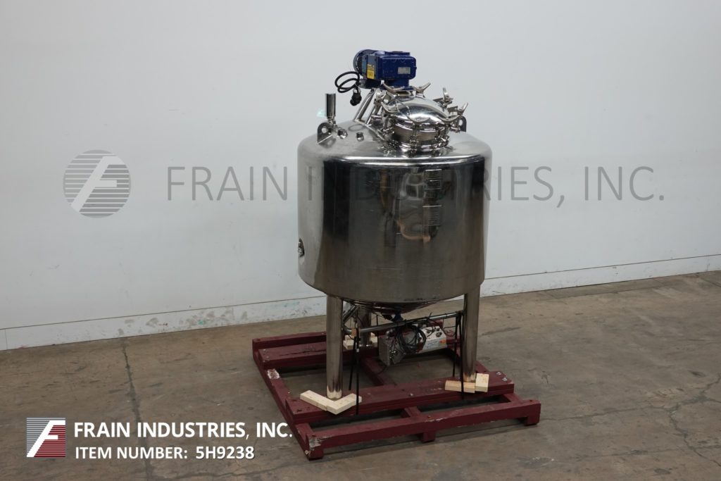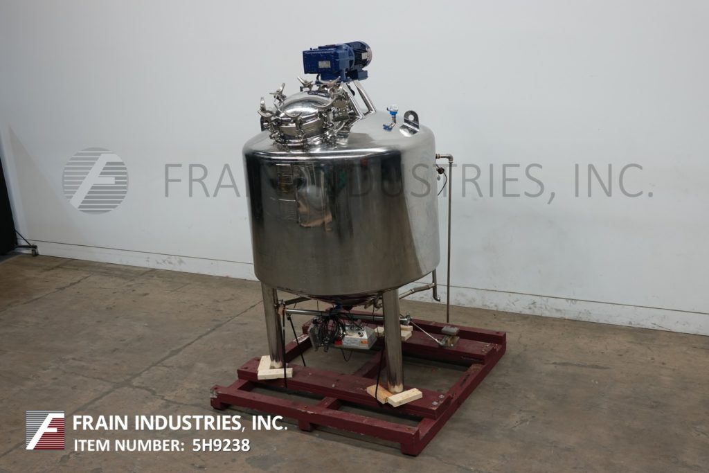 返回所有设备法尔科不锈钢设备公司,200加仑,不锈钢夹套工艺反应器罐。316L外观与# 7完成和316L电抛光完成。船身尺寸:55″OD x 66″深,直壁36″,斜底26″。配备圆顶顶部和16″外径的人孔翻转,螺栓下盖,顶部安装5马力电机驱动刮削表面和支柱搅拌器全侧和底部3区护套。倾斜底部,3″外径,冲洗底部中心底部排放阀,16″地面间隙。安装在不锈钢(3)腿架上。