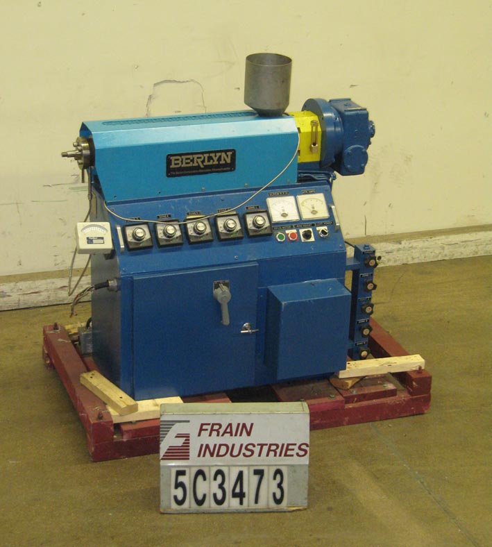 返回所有设备五区挤出机。配备不锈钢产品料斗,产品在进料口翻边,1-1/4"直径由36"长不锈钢螺丝。每个区域通过电加热(单独控制到800°F),并通过铜管和风扇系统进行风冷。L / D比24:1。变速驱动可达125转/分。施法者基地。