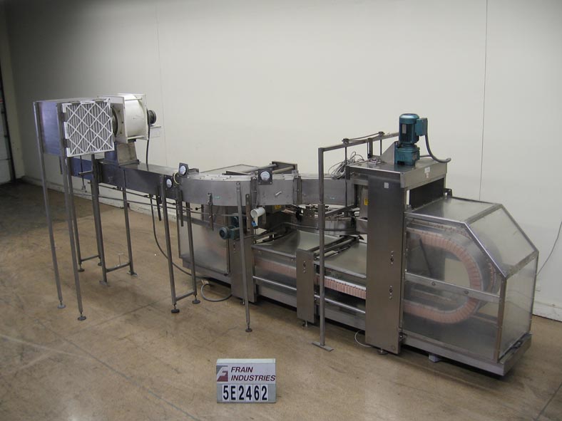 返回所有设备BFT Model HSWC-15自动,高速,倒置,不锈钢瓶装轿厢/每分钟50至260瓶 - 取决于材料和应用。瓶尺寸:直径1“至7”。配备168“长x 4-1 / 4”高双瓶夹持轨道,带塑料夹具带,电离水喷水器和手曲柄调整,不同瓶径,进给/放电输送机47“海拔,三个磁水位流量计,e-stop和障碍防护。