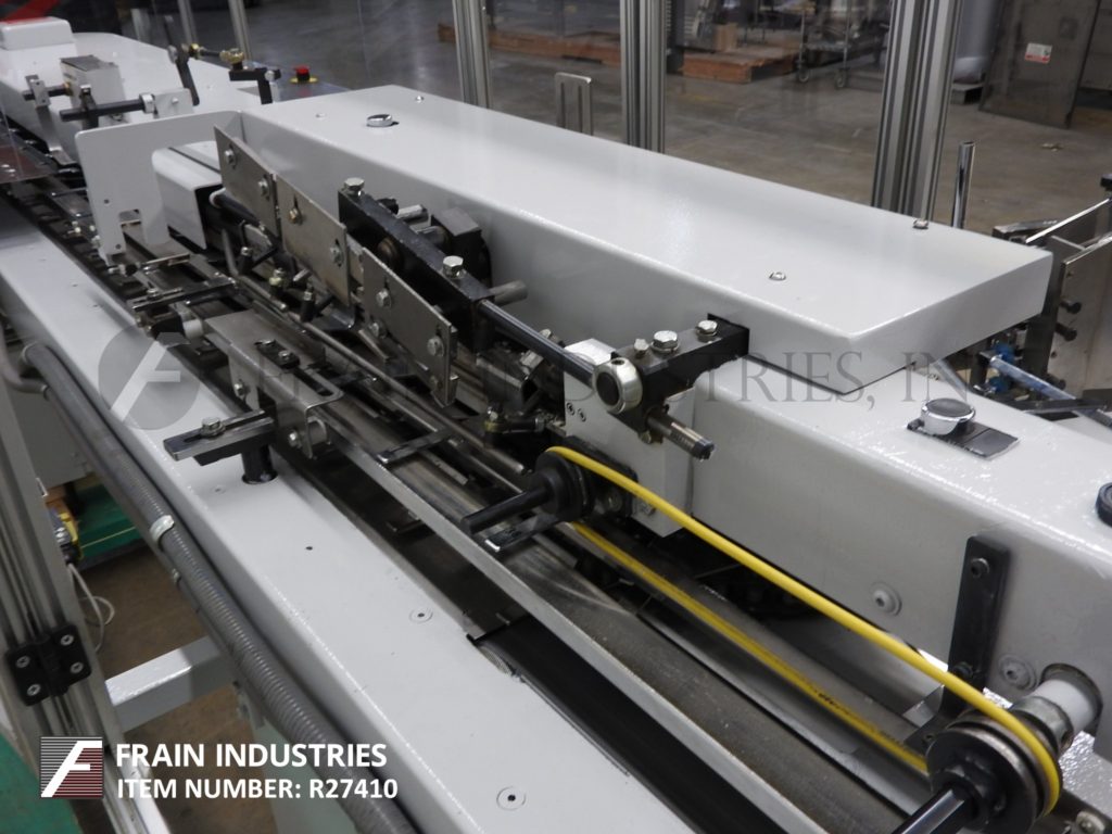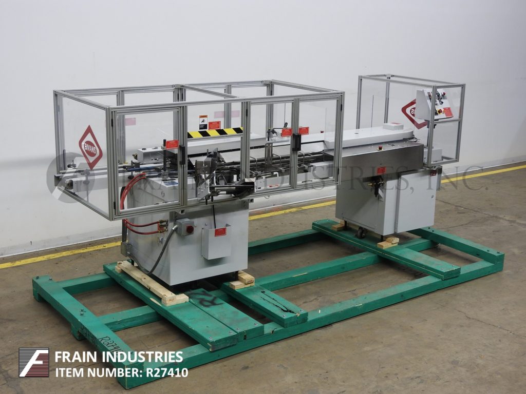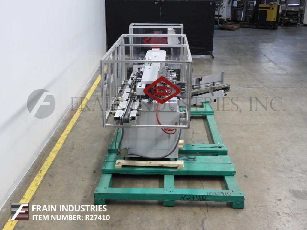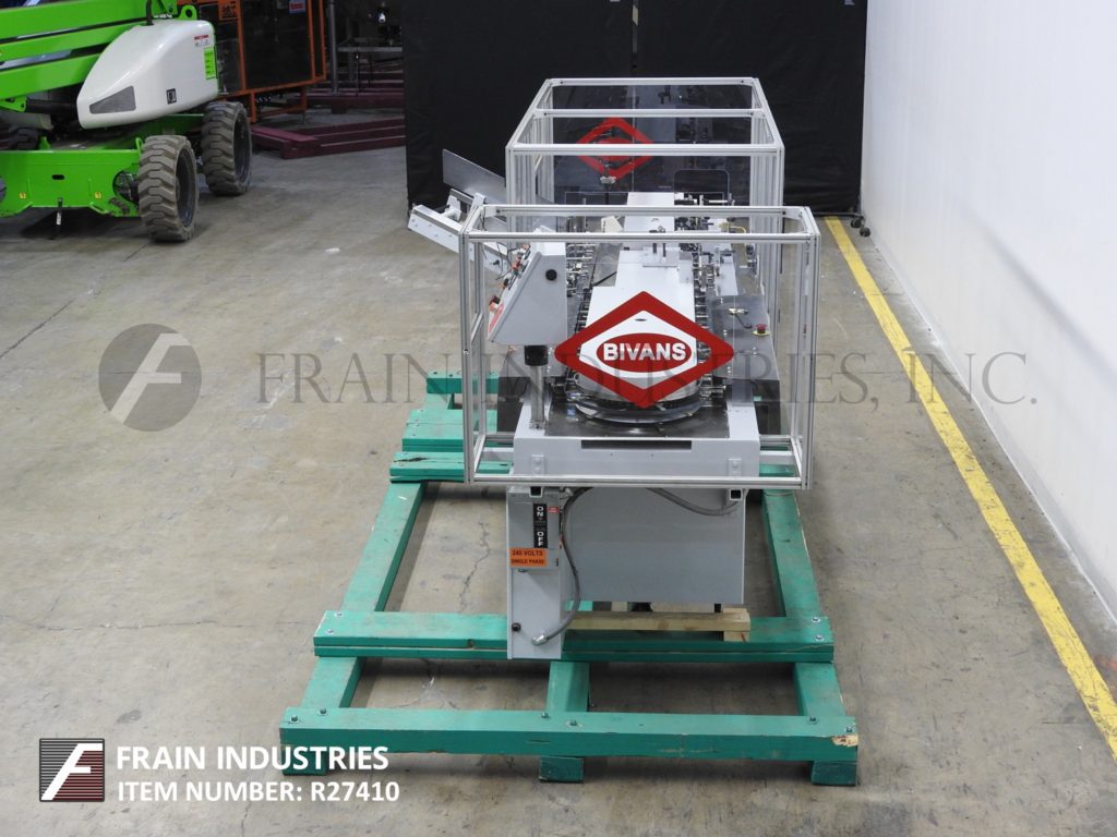 返回所有设备Bivans, 74T型,半自动,连续运动,立式折边纸箱机。纸箱尺寸范围:(7/8)"至5"长度;3 / 4 "至3½"宽度;深度2¼“至10”。配备24"长杂志,真空采摘和地方,6"中心,44"长的负载区域每边,3"宽x 36"长的卸料皮带输送机和Lexan保护。控制面板带有按钮启动/停止/慢跑/复位,运行/慢跑开关,真空开/关开关和变速控制拨盘。安装在重型基础框架与脚轮和水平垫。