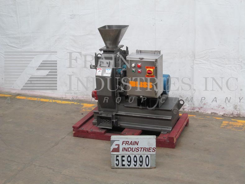 返回所有设备Bliss E1906型,重型,低碳钢,双筛,锤式磨机,576平方英寸筛面积和高达1740 rpm的生产速度-取决于材料和应用。配备一个13" x 9-1/2"外径,9" x 6" ID顶部法兰产品在进料(8)3/8"螺栓孔在5-1/2"中心,八角形外壳,9"外径凹形可逆转子(8)6"长x 2"宽刀/钝摆刀片。侧访问门与一块、弹簧、快换屏幕上马车,驱动轴锁紧装置,可调无泄漏空气清扫,安全规范和振动传感器开关,10“x 7”OD, 7“x 4 1/2“ID侧底法兰卸货港(6)3/8“4螺栓孔”中心,和9“x 7”OD航空救援港,10 hp开车,和启动/停止控制包。安装在重型基础框架。