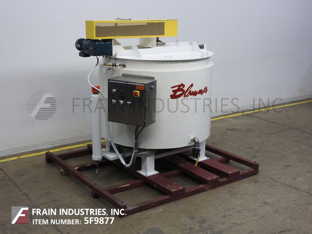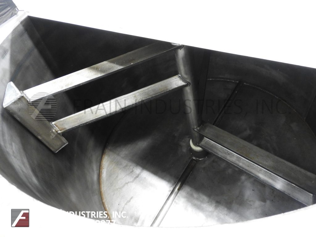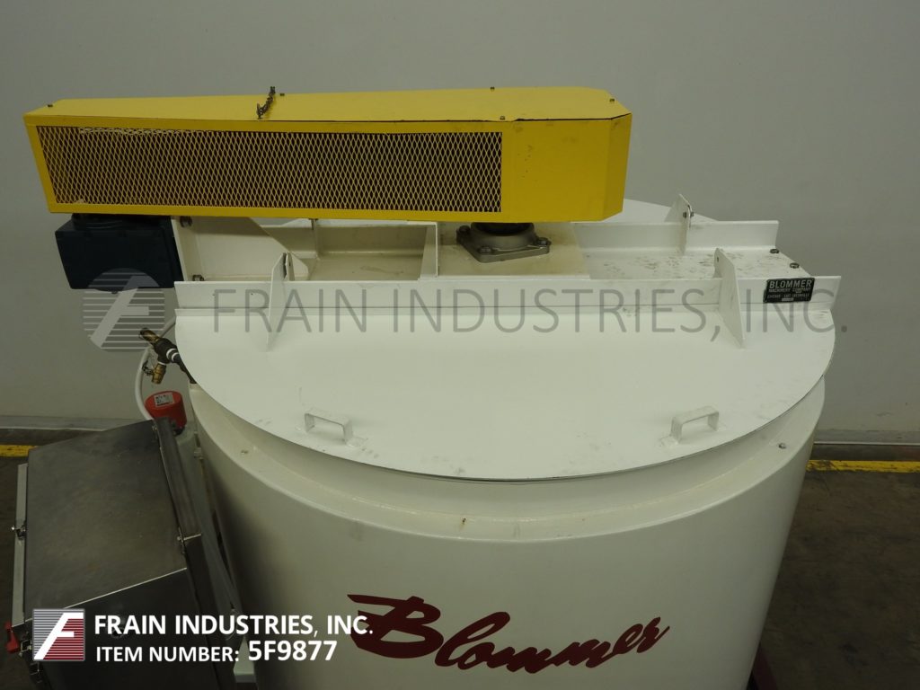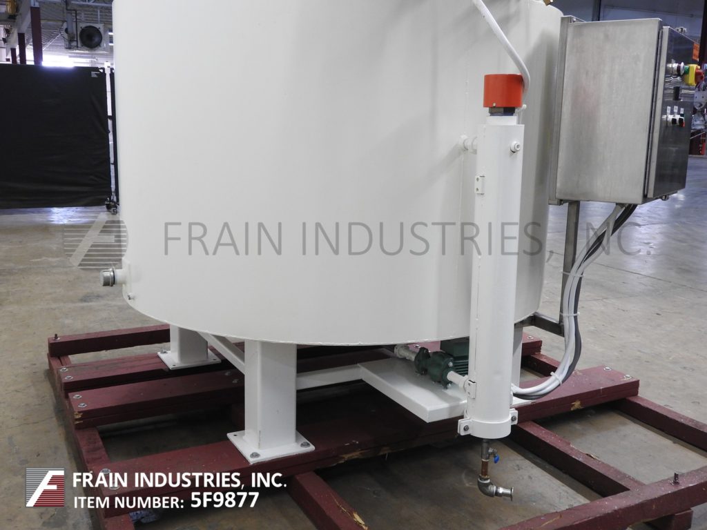返回所有设备Blommer 7500磅的能力,垂直,碳钢,低压力水夹套,巧克力融化和混合容器中。每小时产品的英镑 - 这取决于materails和应用。内室dimmensions:72" ID×48" 的直壁。配备有平顶,双翻转顶盖和桥安装扫搅拌,5马力驱动器,安全保卫和4" OD轴与侧刮桨。全低压水套额定至5psi的与内部挡板以引导通过了水流夹套,以一个循环加热器并返回到护套(4)2" OD侧和(2)的1-1 / 2" OD底部/出口螺纹套和瓦特隆侧安装热水器循环系统。菜底部具有5-1/ 2" 外径螺纹中心底部排出带12" 地板间隙,温度探头和装在(4)碳钢腿。