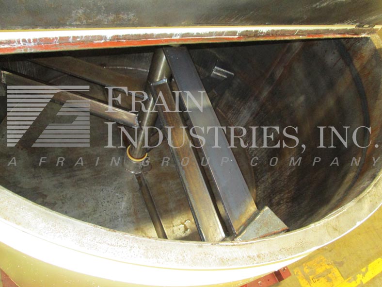 返回所有设备Blommer, 7,500磅容量,垂直,碳钢,低压水套,巧克力熔化和混合容器。内室尺寸:72"内径x 48"直壁。配备平顶,双翻转顶盖和桥式扫搅拌,5马力驱动,安全防护和4"外径轴与侧刮桨。额定压力为5psi的全低压水套,内部挡板引导水流通过夹套,进入循环加热器,然后返回夹套(4)外径为2"的底部螺纹夹套和(2)外径为1-1/2"的底部螺纹夹套,以及安装在Watlow侧的热水器循环系统。碟形底部有5-1/2“外径螺纹中心底部放电,12”地板间隙,温度探头安装在(4)腿上。