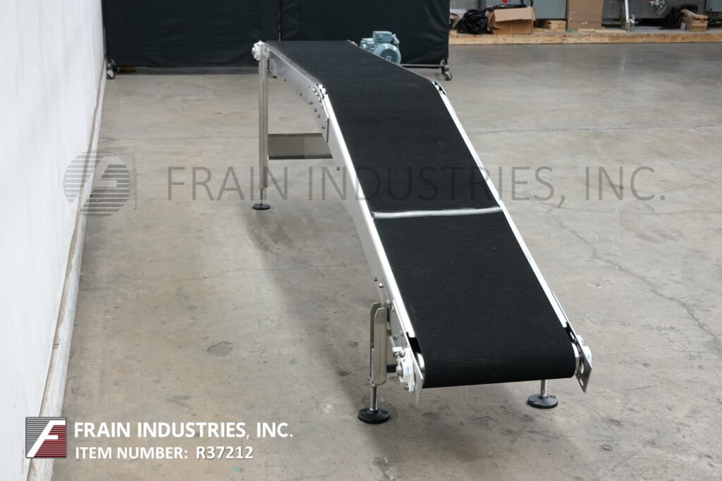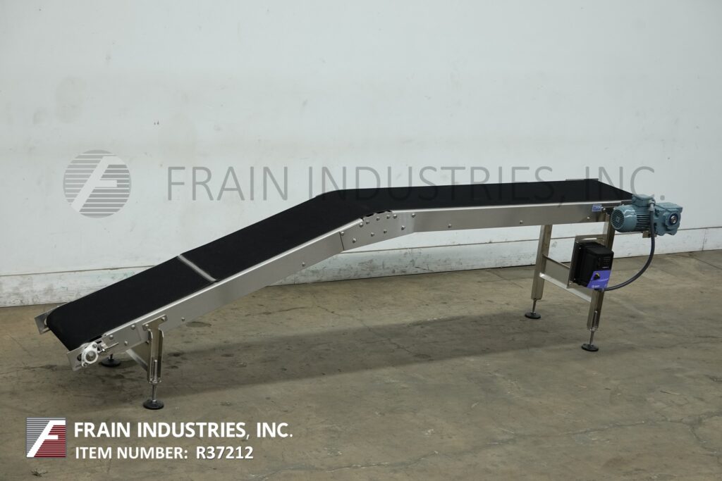 回到所有设备BMI,不锈钢倾斜输送机。配备13”进料高度,18”宽输送带。输送机有一个67"长的倾斜,72"长的顶部水平运行和36"的排放高度。由½马力马达驱动,可变速,安装在(4)腿不锈钢基础框架上。