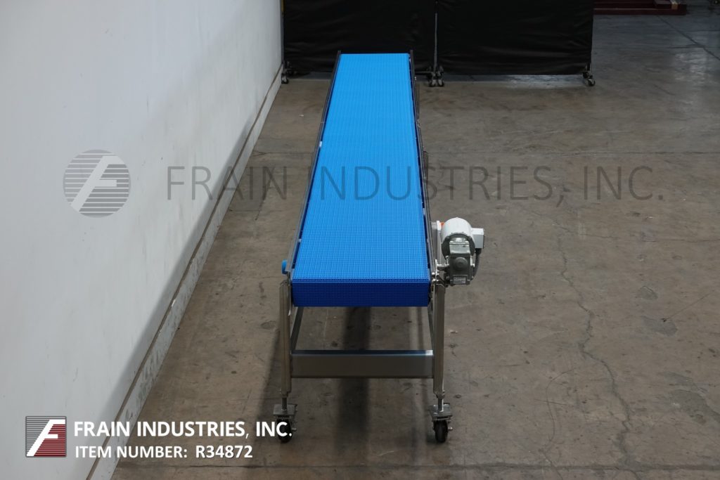 BMI不锈钢框架输送机。配备24"宽x 240"长桌面产品输送带,在进料和出料高度范围内有34"到39"。由四分之三马力驱动器与变速控制器。安装在不锈钢支架上,配有调平垫。
