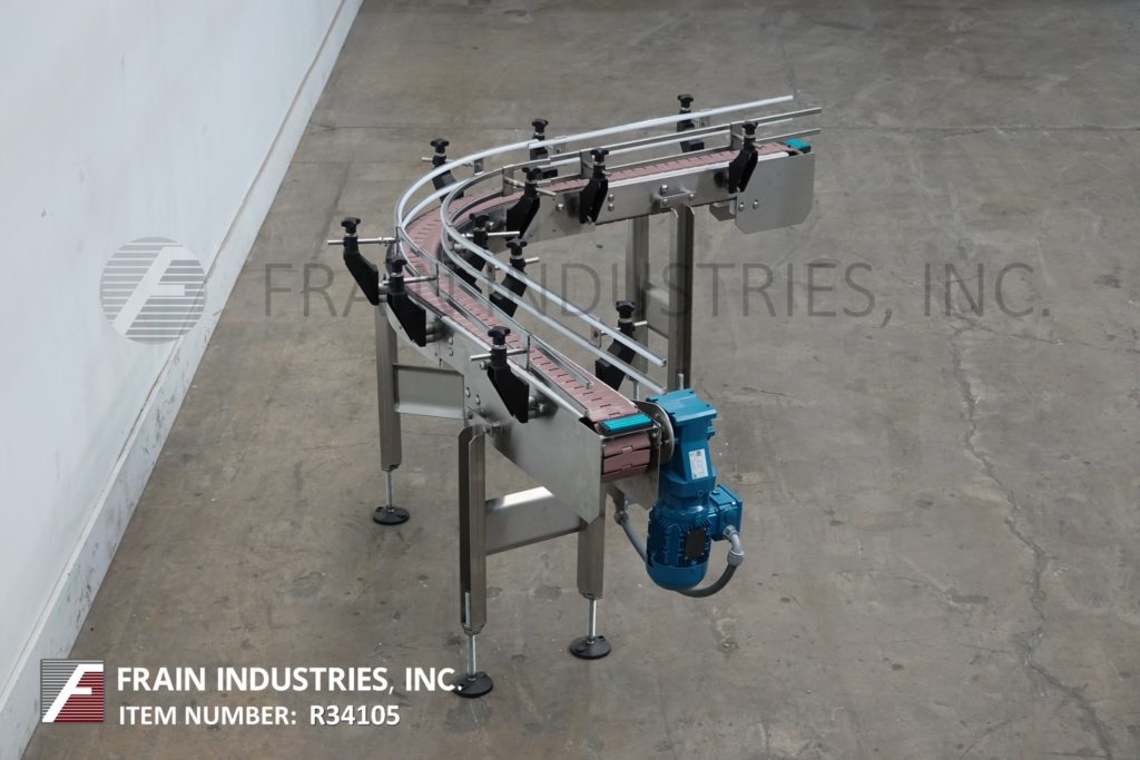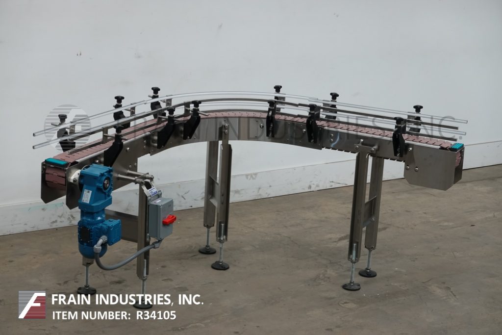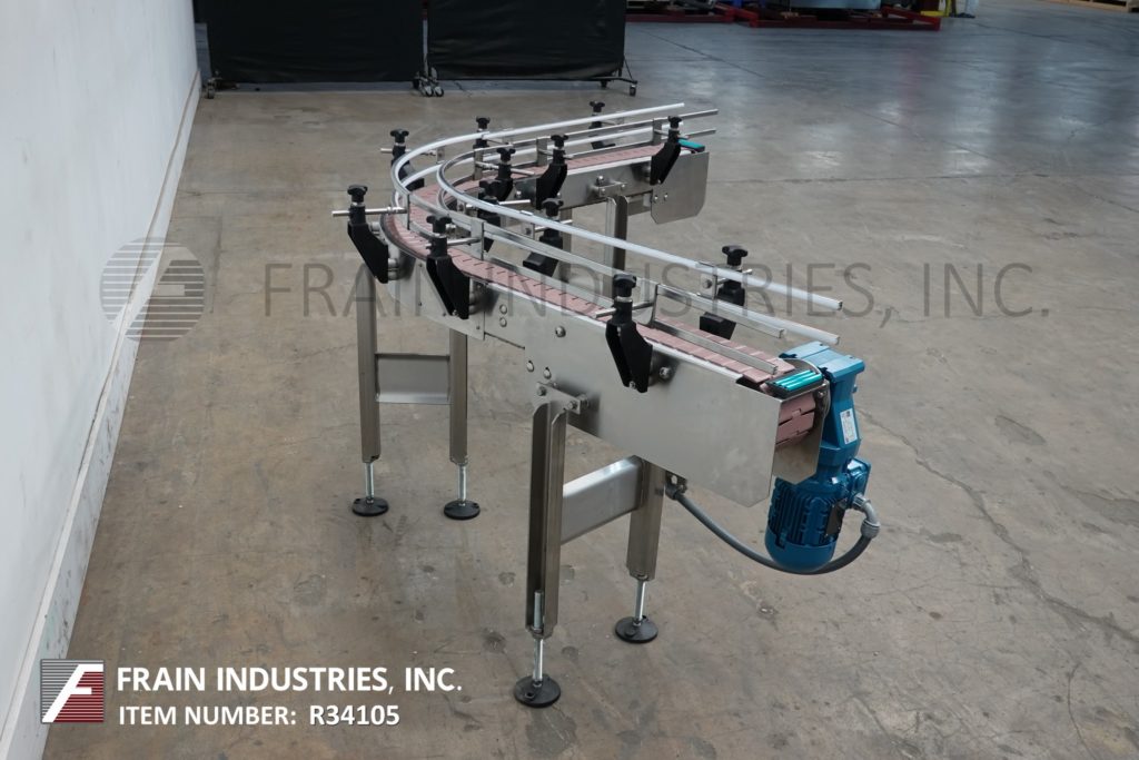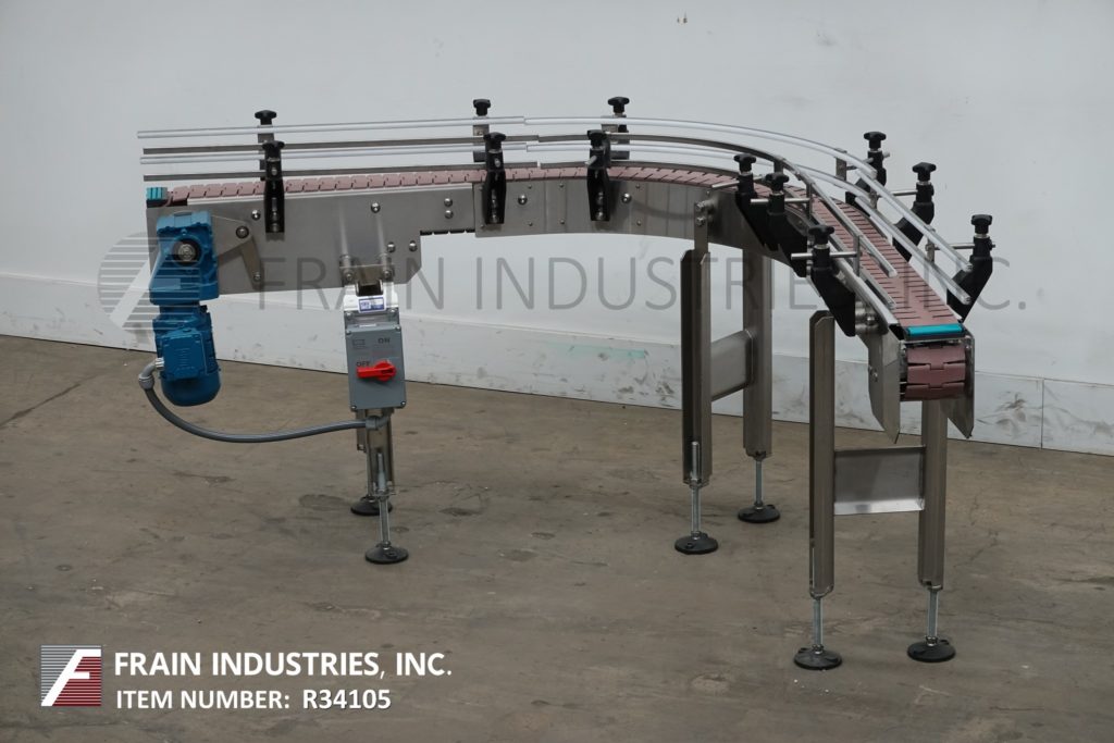 BMI, 90°4½“宽x 105”长,不锈钢输送机。配备了48英寸长的进给到90°转向48英寸长的放电与30英寸到37英寸的进给/放电高度。由一台半马力驱动。