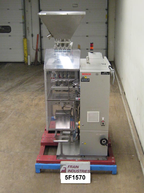 Back to All EquipmentVertical, multi-lane, form, fill, seal, stick pack machine rated from 30-90 strokes per minute – depending on materials and application. Bag size: 60mm to 200mm in Length; 35mm in Width. Laudenberg LRS44 volumetric slide tube filler equipped with 33" long ; 23" wide ; 24" deep product hopper, has four individual dosing heads and formers. 12" wide hot knife cross cut gripper draw seal jaw and four 8" long lap seal jaws one for each forming tube. Features film registration, slitter knifes, microprocessor with touch pad controller and panel view, statis light bar, safety guarding. Film specifications: 22" long film reel with a max 18" OD on 3" ID core.