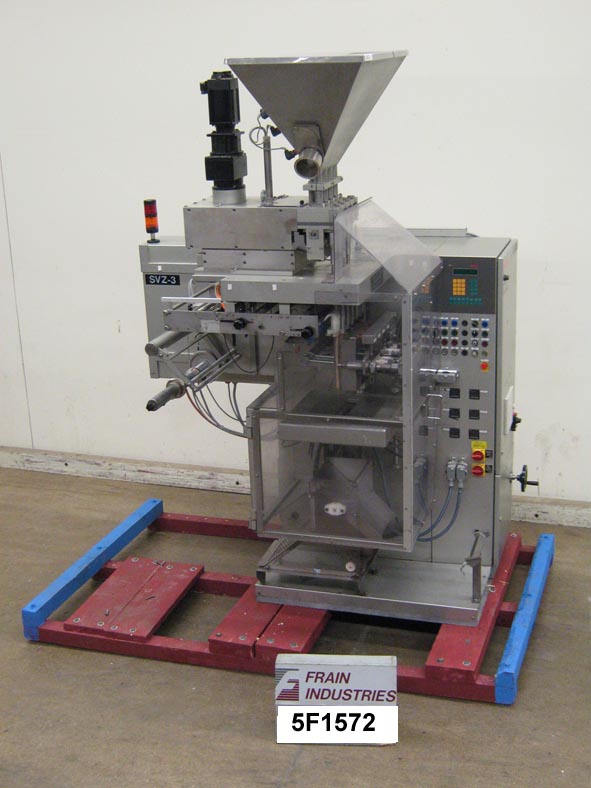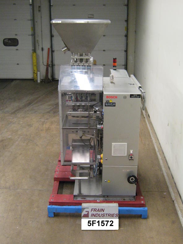 返回所有设备博世SVZ0350AQ型,立式,多道,成型,填充,密封,粘接包装机额定每分钟30到90冲程,产品数量取决于材料和应用。袋径:长度60mm至200mm;35毫米宽。劳登堡LRS44容积滑管填料配备33”长;23“宽;24英寸深的产品料斗,有四个独立的加药头和成型机。12"宽热刀十字切割夹持器拉密封颚和(4)8"长搭接密封颚为每个成型管。特点薄膜登记,分切刀,微处理器与触摸板控制器和面板视图,统计灯棒和安全保护。22"长胶片卷轴,最大外径18",3" ID芯。