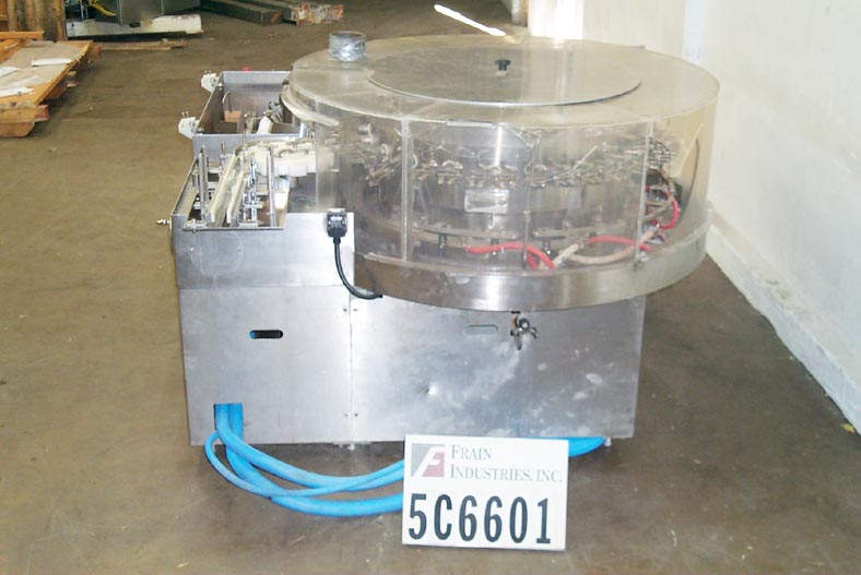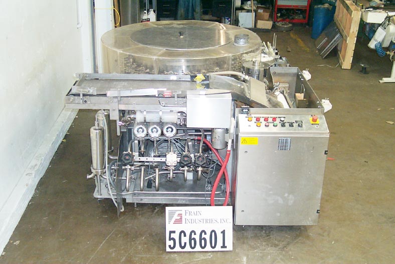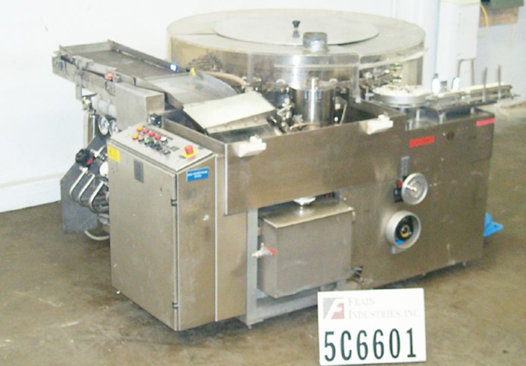 返回所有设备博世制药RRU3040型,自动不锈钢,每分钟/小时瓶数的瓶清洗器-取决于材料和应用。小瓶饲料从传送输送机到水浴超声波振动板设计辐照小瓶。饲料螺旋输送机分离容器,并将它们传递到细胞轮的细胞。细胞将容器从水浴中取出并转移到v形夹中。在此转换后,v型夹具旋转通过并将容器传递到上端位置的清洗站。内部和外部清洗发生在通过机器的旅行。为了进行内部清洗,喷针上升到连续运行的容器中,跟随容器的运动方向。容器被喷洒,然后在内部干燥。在此之后,喷针从容器中下降,并向反方向移动回到起始位置。