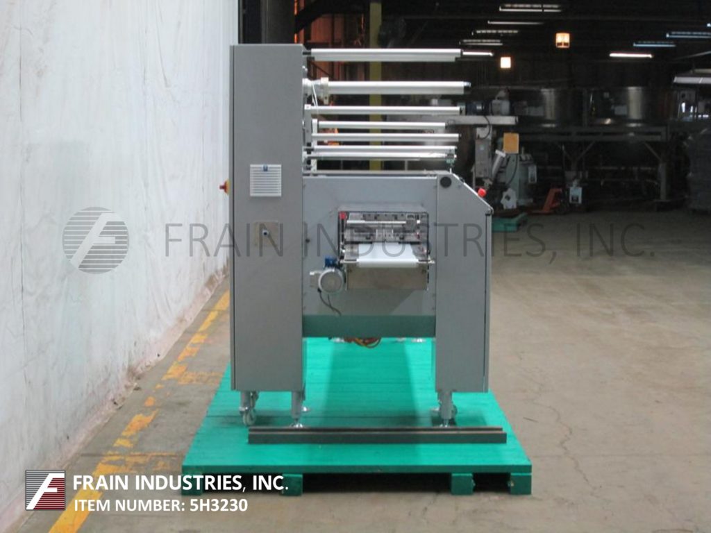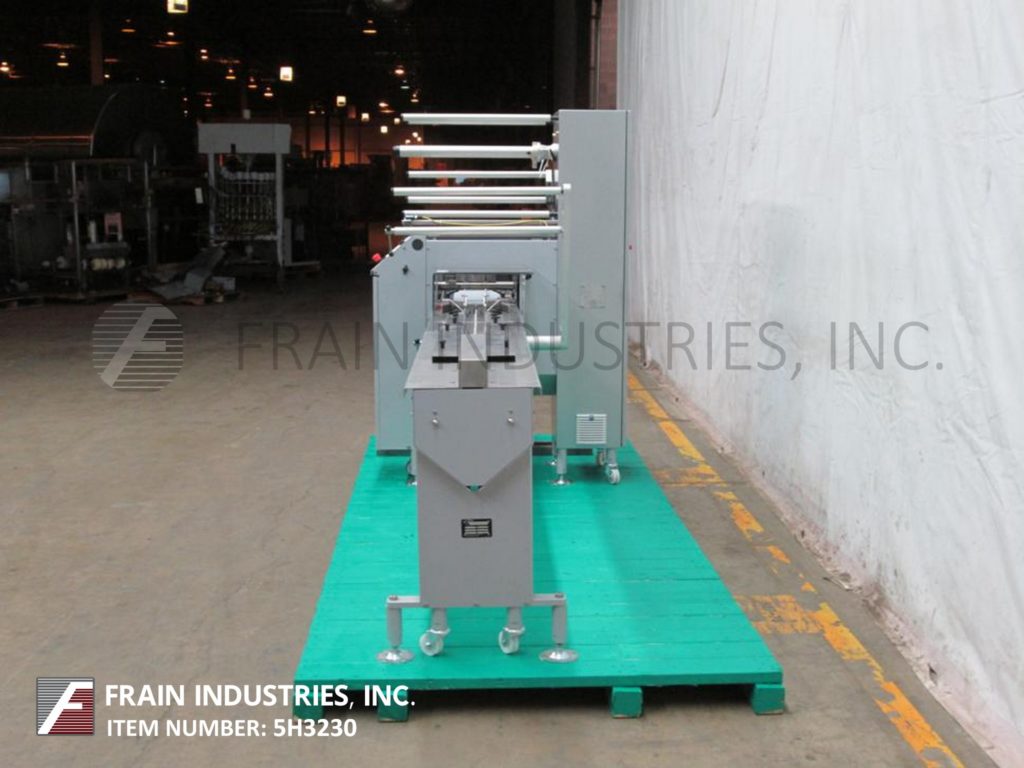 返回所有设备Doboy型PACK 101,1-up,卧式,包装额定每分钟20到75包-取决于材料,应用和机器配置。产品尺寸范围:3"至14-3/4"长度;宽度1/2"至6-1/2";高达3-3/4英寸的高度。配备80"长拖齿产品在饲料输送机与48"手负荷区域和弹出凸耳。可调成型头,8"宽x 3/4"厚锯齿刀密封钳,鳍片密封轮,薄膜注册和安全保护。网页规格:25 1/2英寸宽;最大辊直径16"与3"直径核心。安装在基础框架与高度可调腿和脚轮。