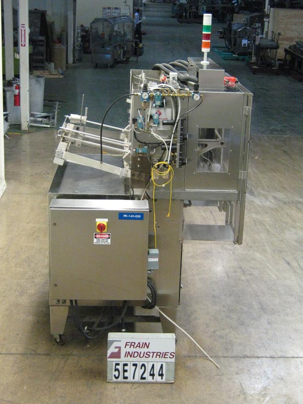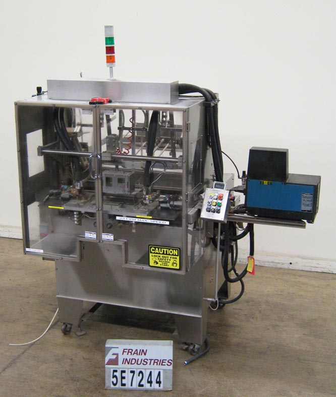 返回所有设备自动,S / S,间歇运动,托盘以前速度为20 - 60周期@ Min,具体取决于应用。有一个24“L X 44”W平面空白杂志,可根据板上卡钳举起高达1000张坯料,最大扁平空白尺寸为32“L X 21 1/4”W,回离(2)吸盘式照片N-Place,Feed Bar,潜水单头柱塞,形成头部,Nordson 3400V(4)枪H / M胶水系统,A / B控制器,带ON,JOG运行,用机器间隔表盘胶水准备控制,e-Stop,互锁Saftey保护并安装在S / S基架上