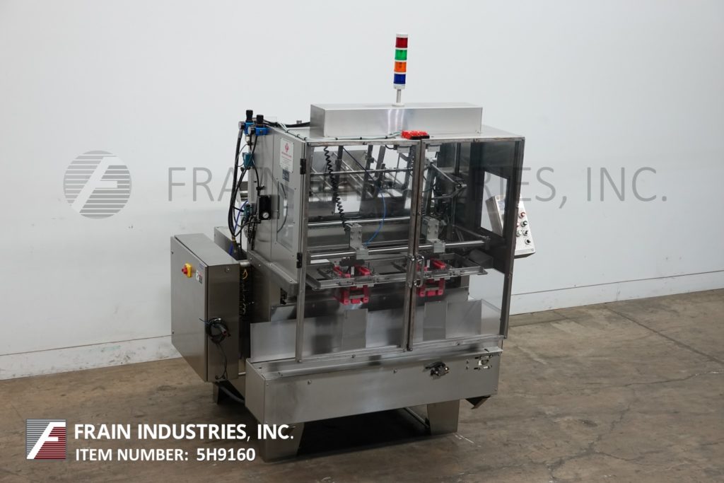 返回所有设备布拉德曼湖型H2S-60,自动,(2)头不锈钢托盘成形。额定60周期每分钟每个头与托盘数量-取决于材料,应用和机器配置。空白托盘尺寸高达20.8“的长度;40“宽;3/4“到6.6”的高度。配备(2)空白托盘杂志,与吸盘真空往复式挑位,(2)机械6“x 6”托盘成型头和密封区与Lexan联锁安全门。控制面板有左和右馈电开关/关闭开关,速度控制刻度盘和电源开关和e-stop按钮,每分钟的行程读数。安装在不锈钢框架上,配有高度可调节的调平支腿。