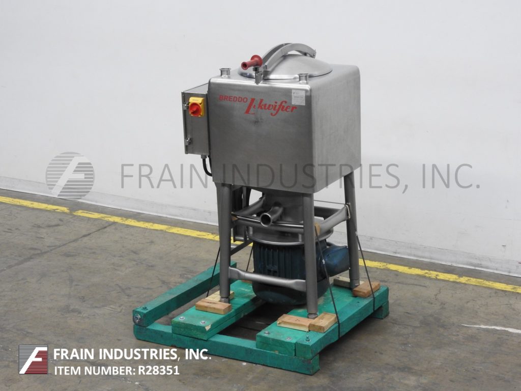 返回所有设备Breddo, LDT型,50加仑304不锈钢单壁液化器,每小时的产品数量取决于材料和应用。腔体尺寸:24" x 24" x 24"直壁。配备18“直径上男人与翻转上螺栓下盖,(2)2½OD / 2“ID tri-clamp风格上入口端口,下6孔/ 3翼通用叶轮、底10 Hp马达驱动,3”OD / 2½“ID tri-clamp侧底放电21”地板结算。安装在不锈钢(4)腿管状框架上。