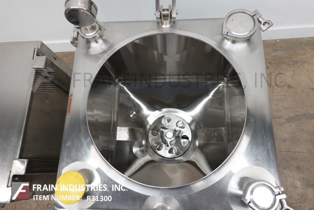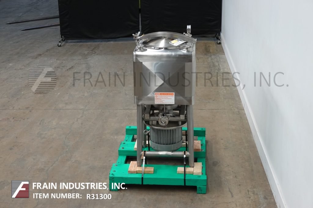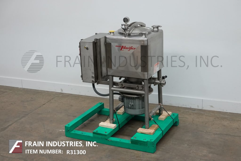 返回所有设备Breddo, LDT型,50加仑316不锈钢单壁液化器。腔室尺寸:24"长x 24"宽,22"直壁。底部6孔/ 3翼通用叶轮,2½”外径/ 2”ID三夹式侧底卸料与蝶阀,23”地板间隙。安装在(4)腿架上。