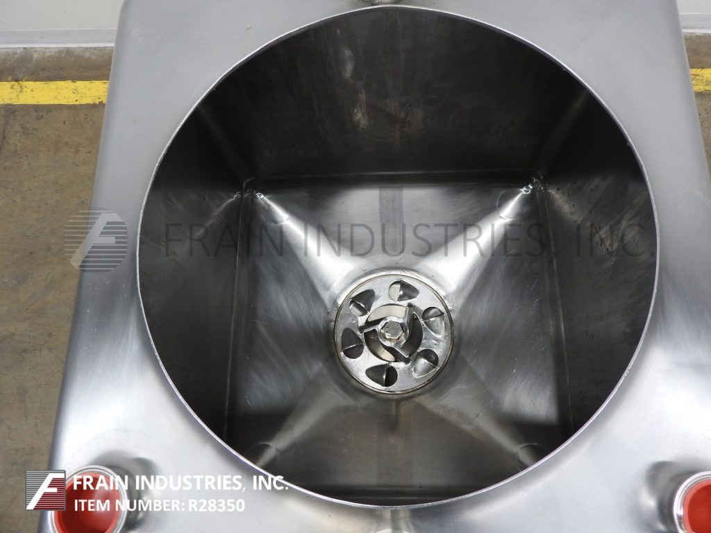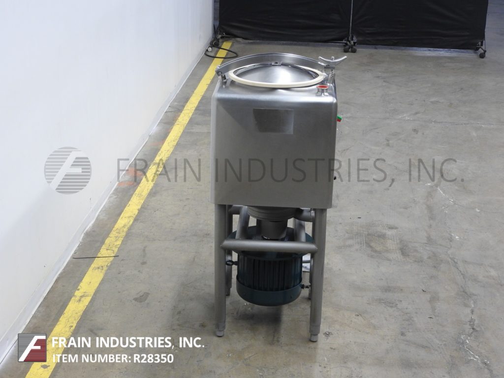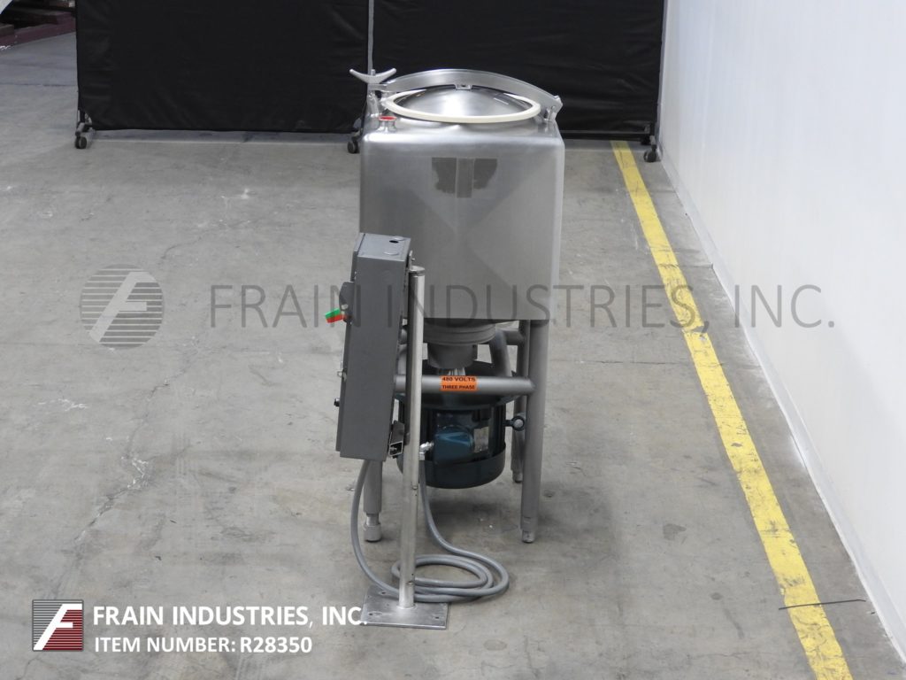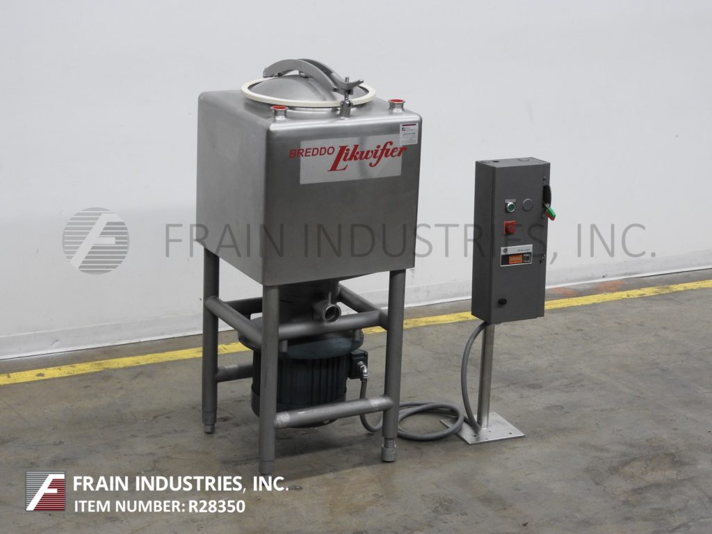 返回所有设备Breddo, LDT型,50加仑304不锈钢单壁液化器。腔体尺寸:24" x 24"带有24"直壁。配备一个18“直径上男人与翻转上螺栓下盖,(2)2½OD / 2“ID tri-clamp风格上入口端口,下6孔/ 3翼通用叶轮和3”OD / 2½“ID tri-clamp底部排放有23”地板结算和底部15惠普马达驱动。安装在不锈钢(4)腿管状框架上。
