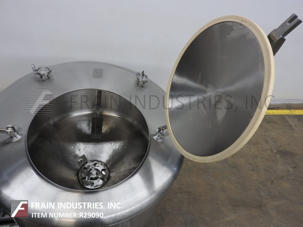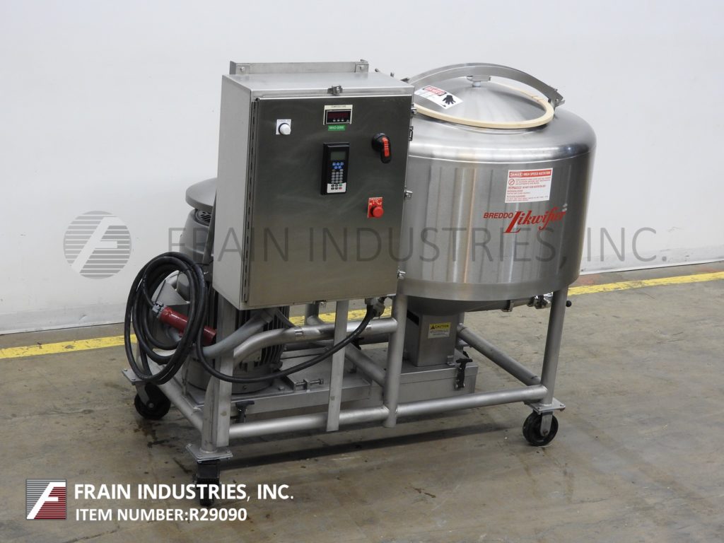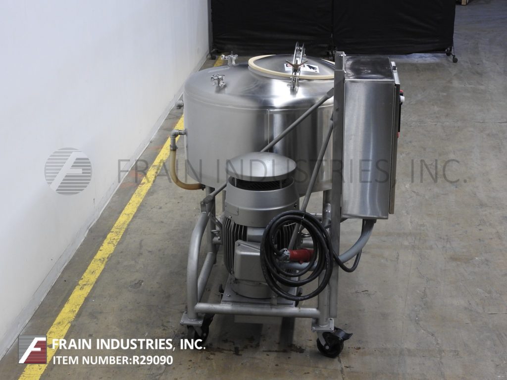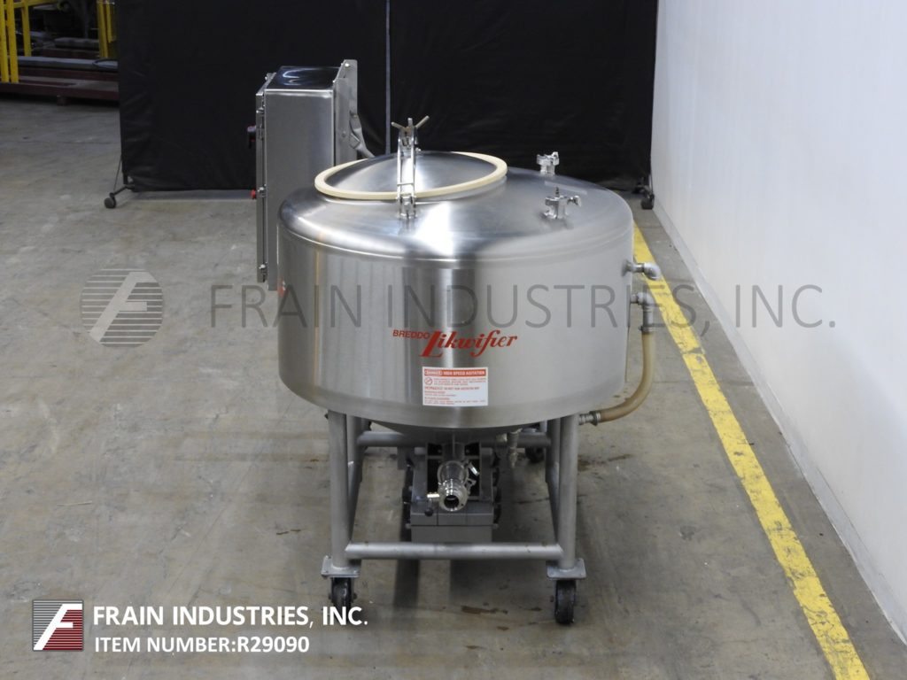 返回所有设备Breddo Model LOR,100加仑,不锈钢,夹套,高剪切液,每小时的产品量 - 取决于材料和应用。配备42“ID X 21”直墙,带有22英寸的OD Man方式,带有翻盖螺栓盖板,(2)2-1 / 4“OD螺纹顶级卫生港口。全面和底部夹克额定125 psi和临时额定值,高达350°F,用(3)2-1 / 2“OD螺纹夹克端口。底部10”OD 6孔/ 3翼叶轮,内部挡板和侧面安装了50 HP电机带驱动器带底部带防护和闩锁处理。锥形底部有2-1 / 2“OD / 2”ID侧底蝶阀排放阀,带23“接地清除。带有触摸板和温度控制器的带A / B PowerFlex Vari Frequency的控制面板,启动和电子停止按钮控制。安装在不锈钢管式底座上,带脚轮。